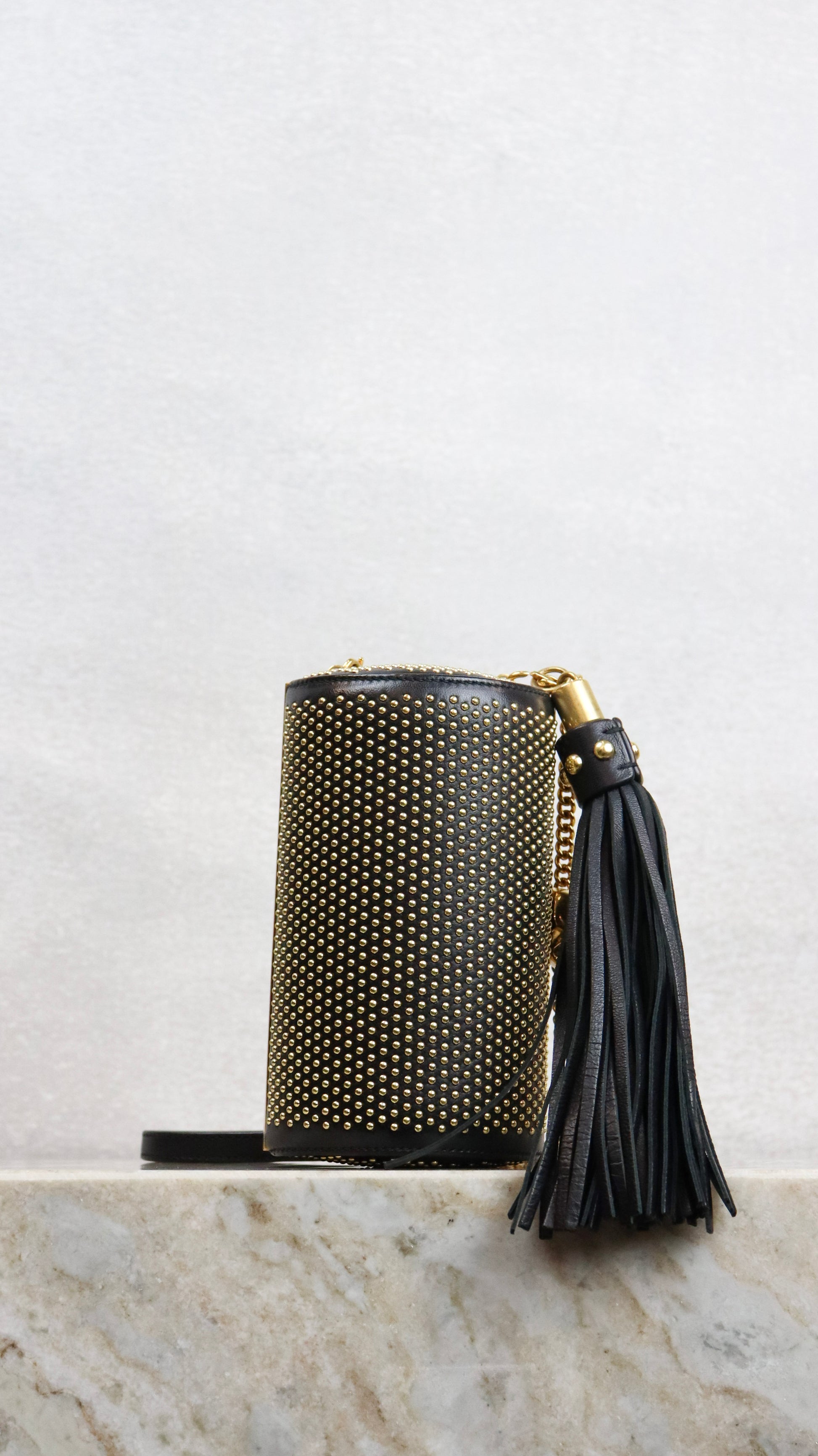 Black Alexander McQueen Gold Studded Evening Bag w/ Tassle