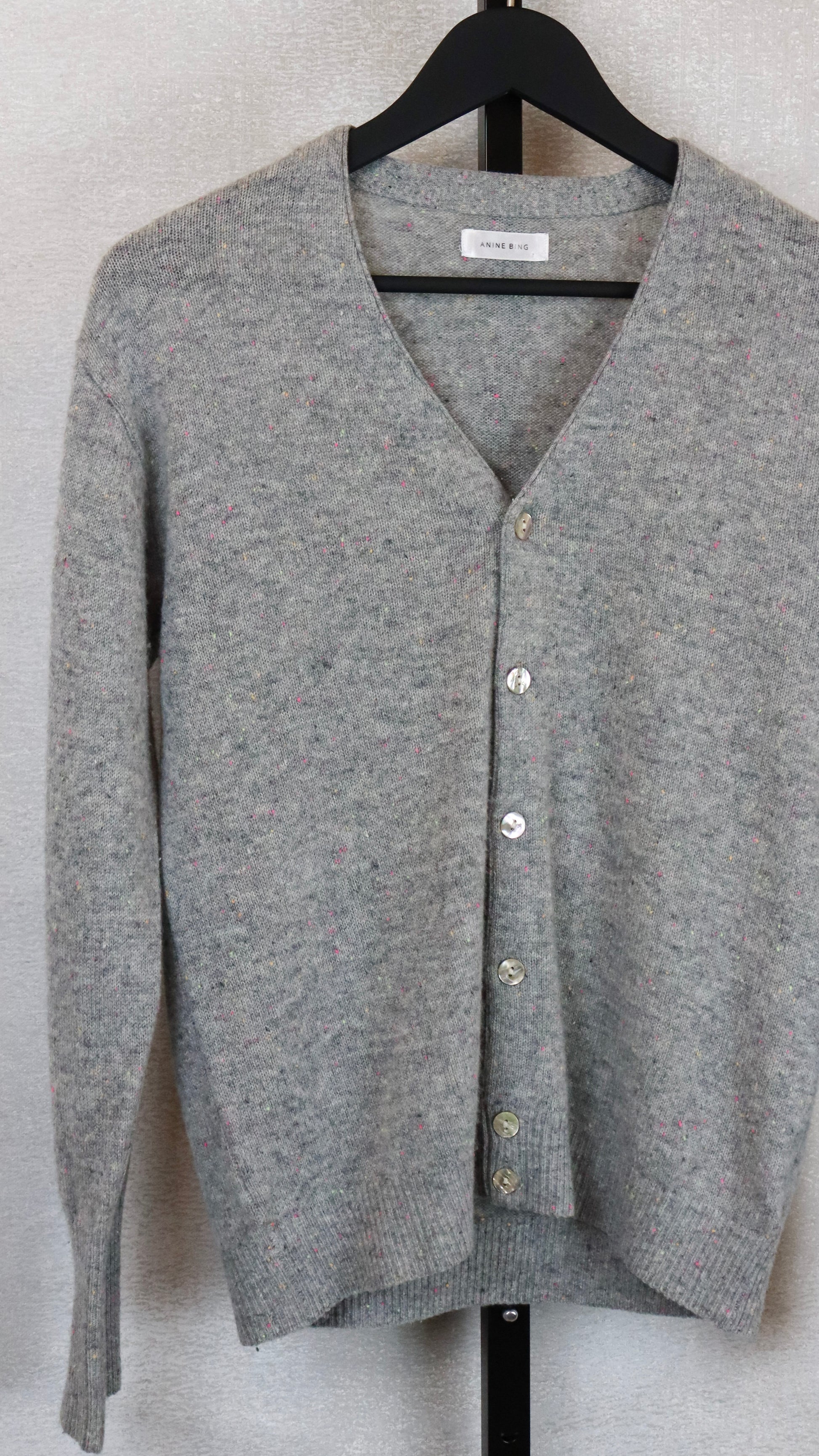 Grey Cashmere Button Up Cardigan w/ Multi Colour Speckles