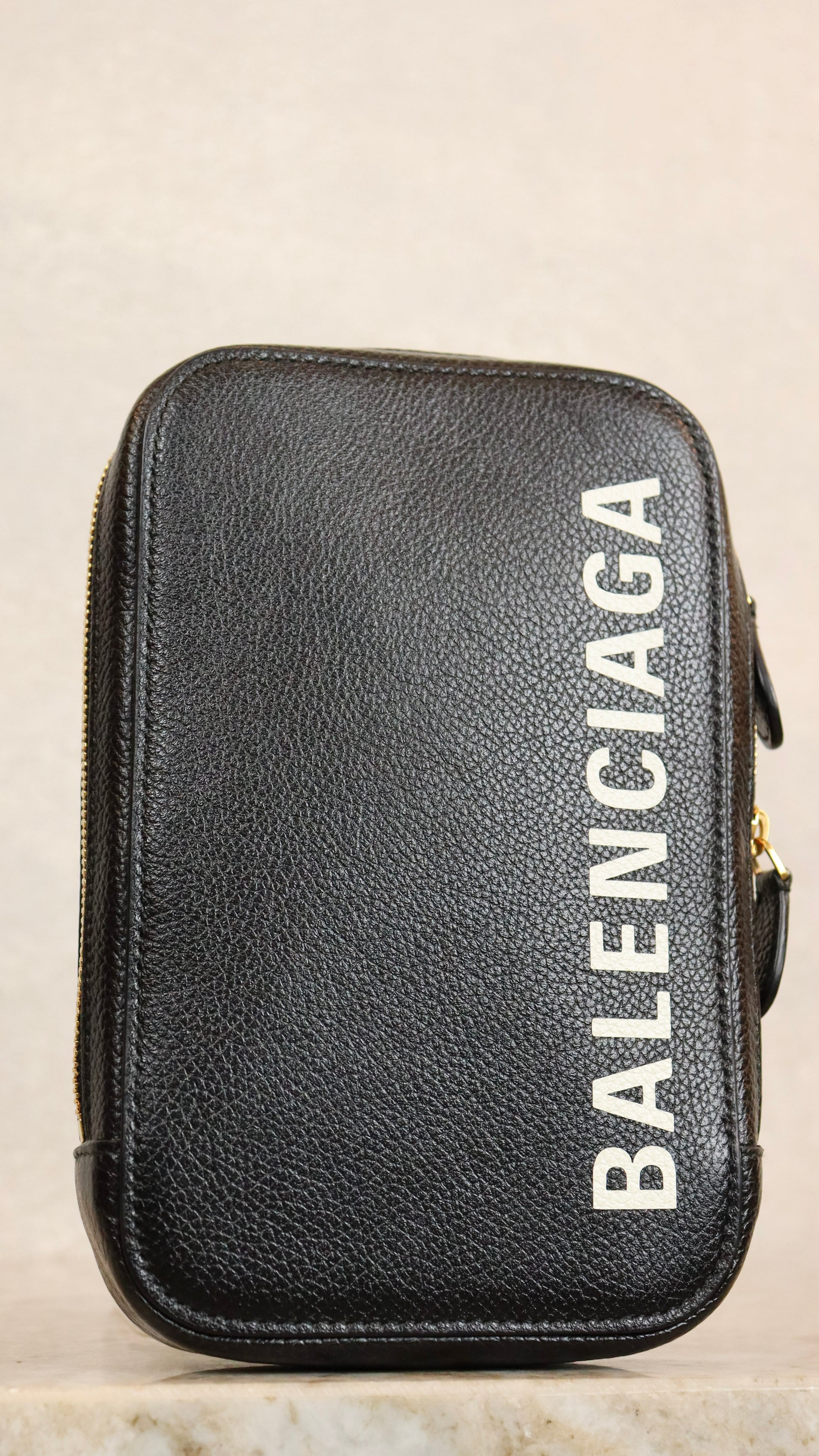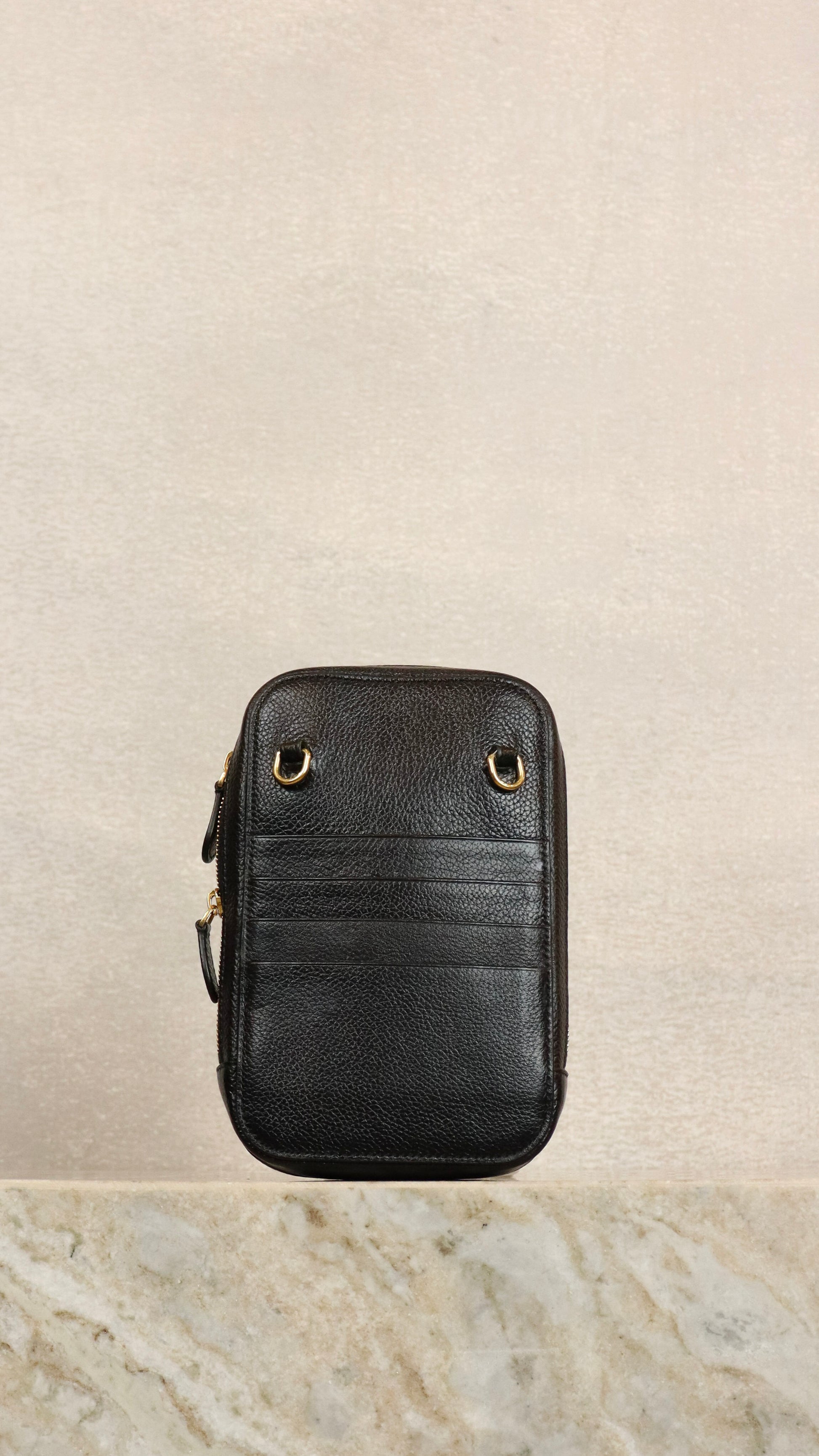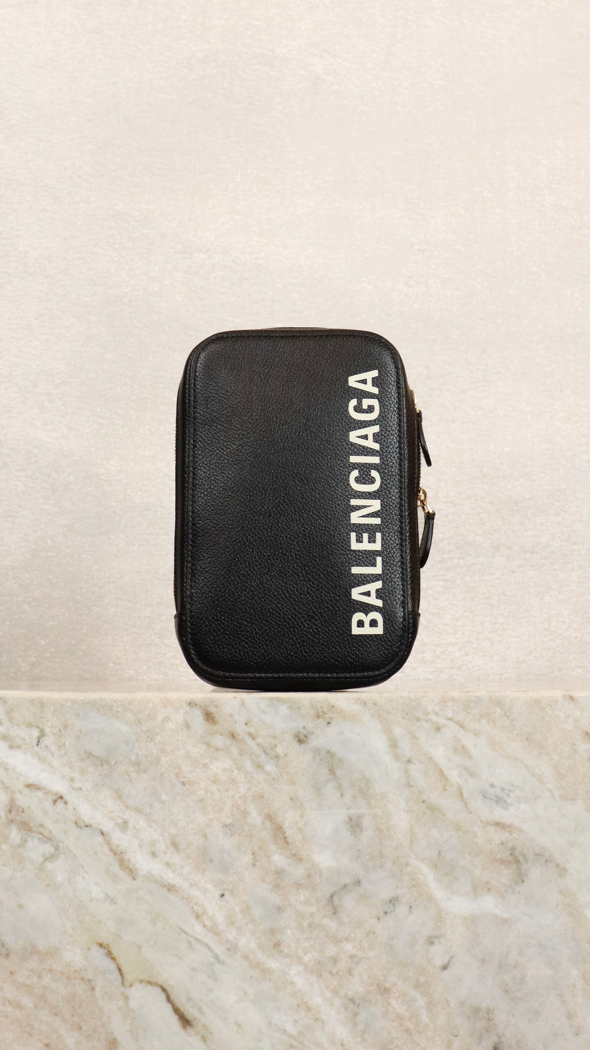 Black Calfskin White Logo Bag w/ Shoulder Strap + Card Slots