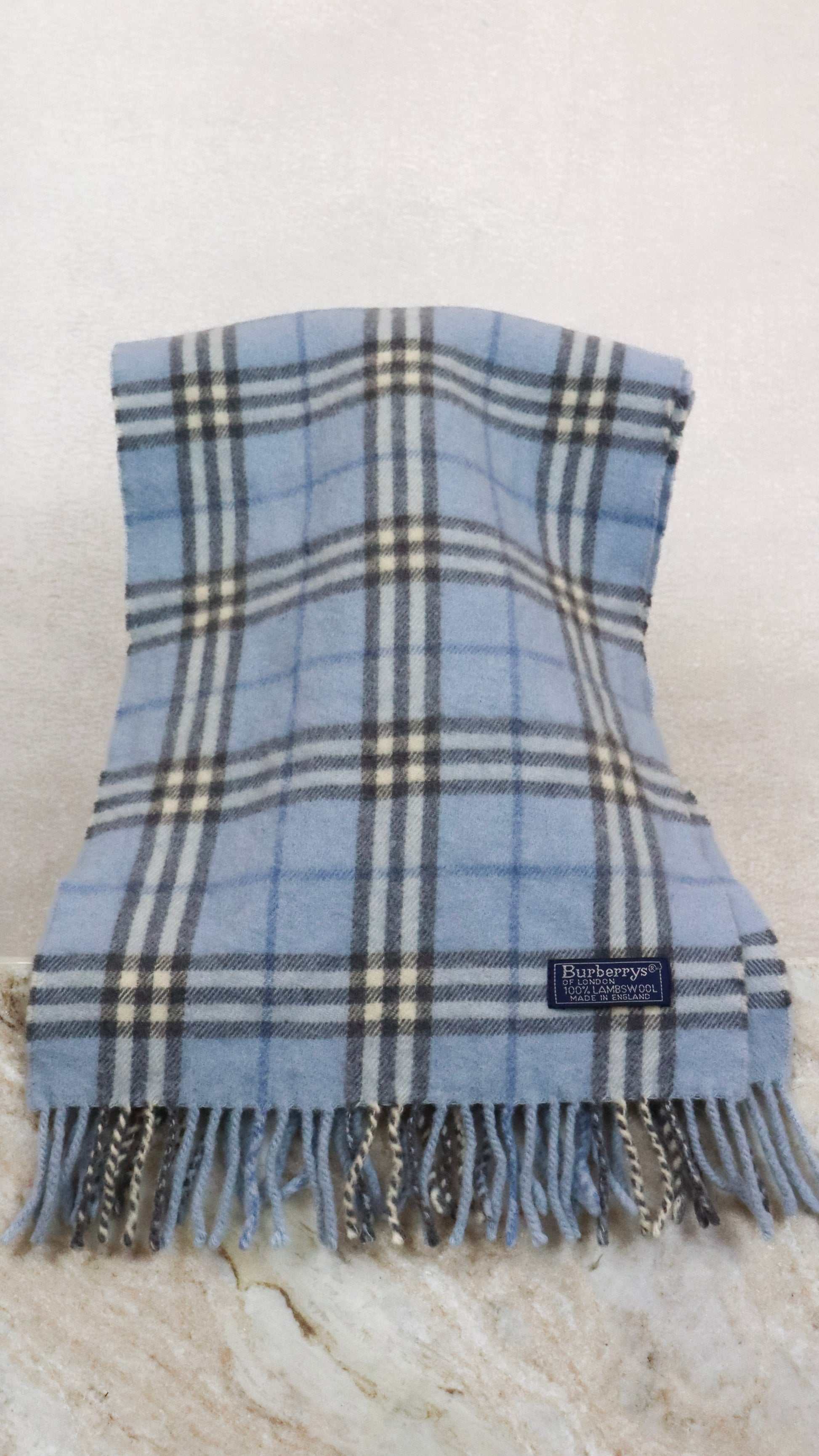 Blue + Grey Plaid Burberry Scarf Made With 100% Lambswool
