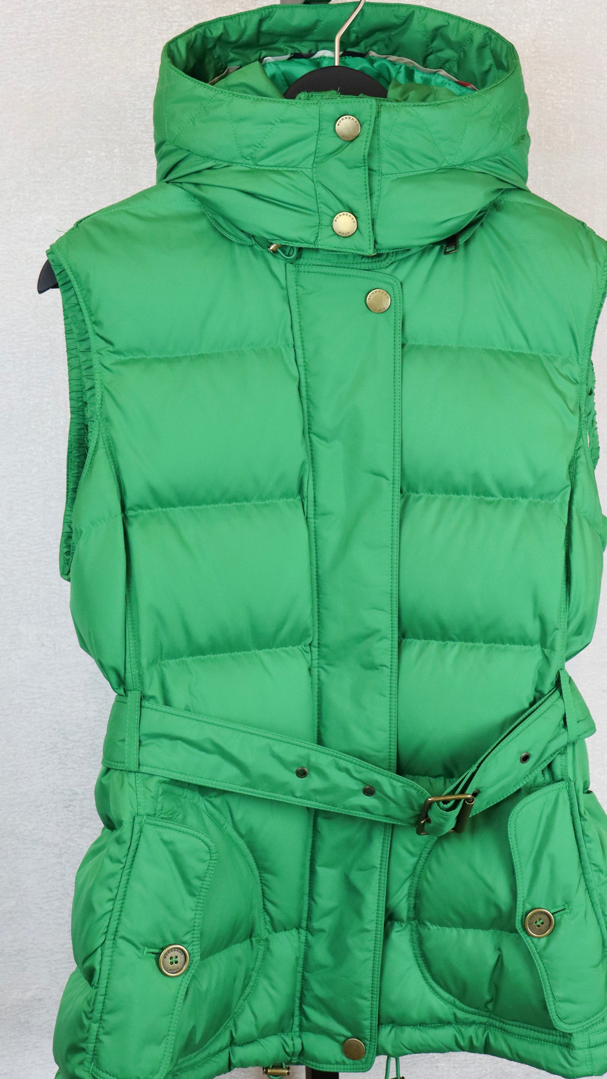 Green Burberry Belted Puffer Vest w/ Detchable Hood