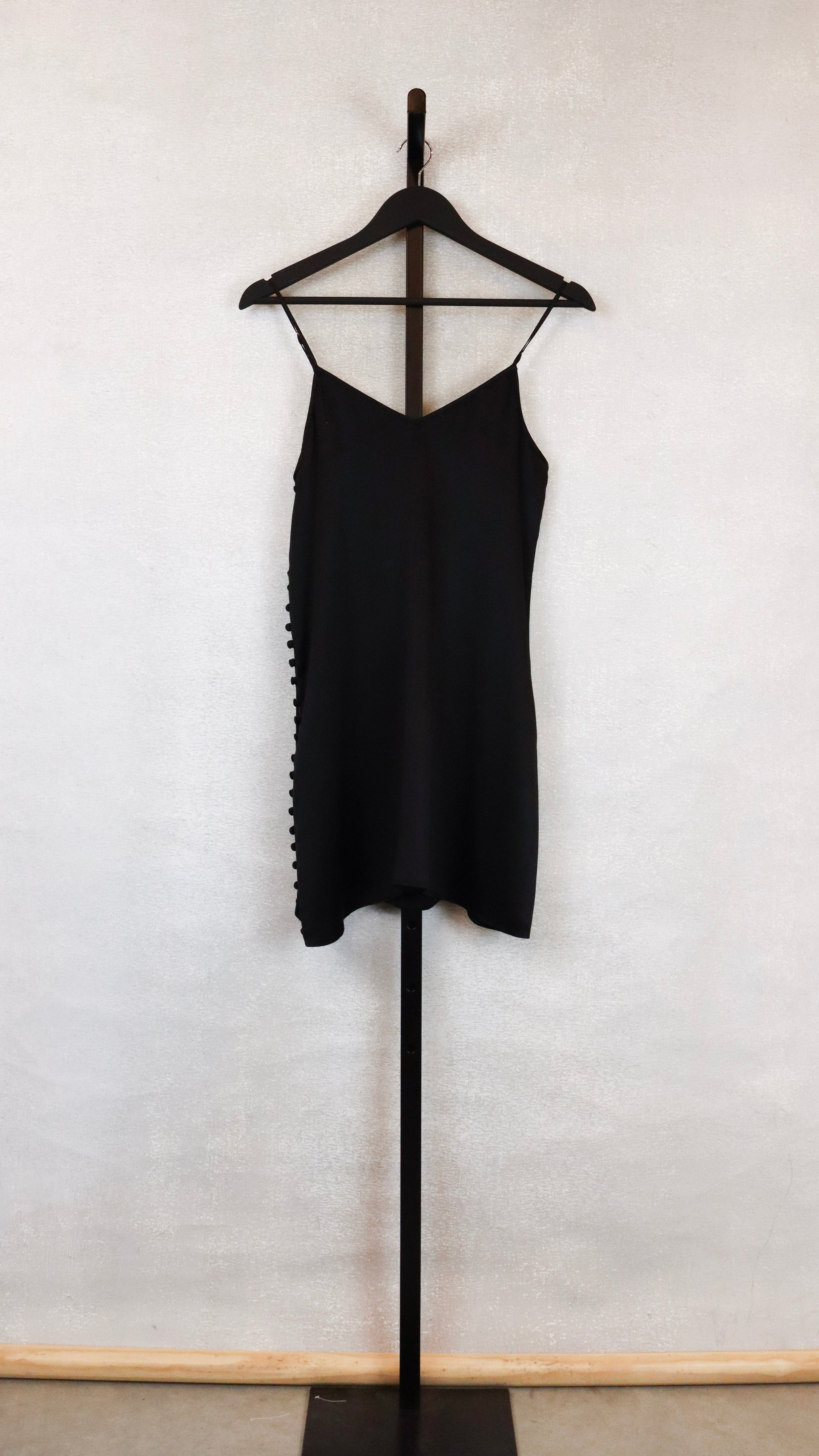 Black Silk Skinny Strap Dress w/ Button Design On The Side