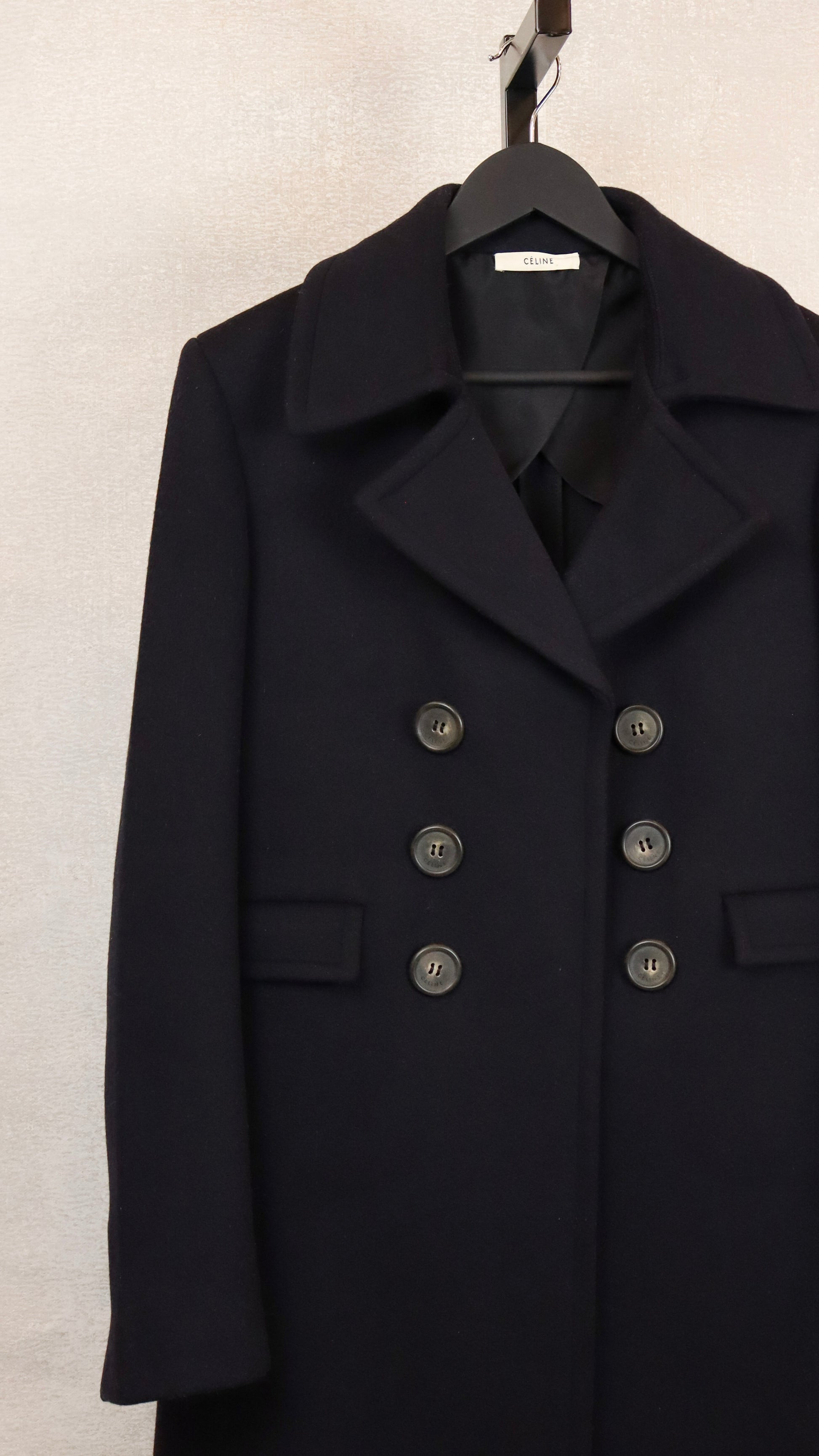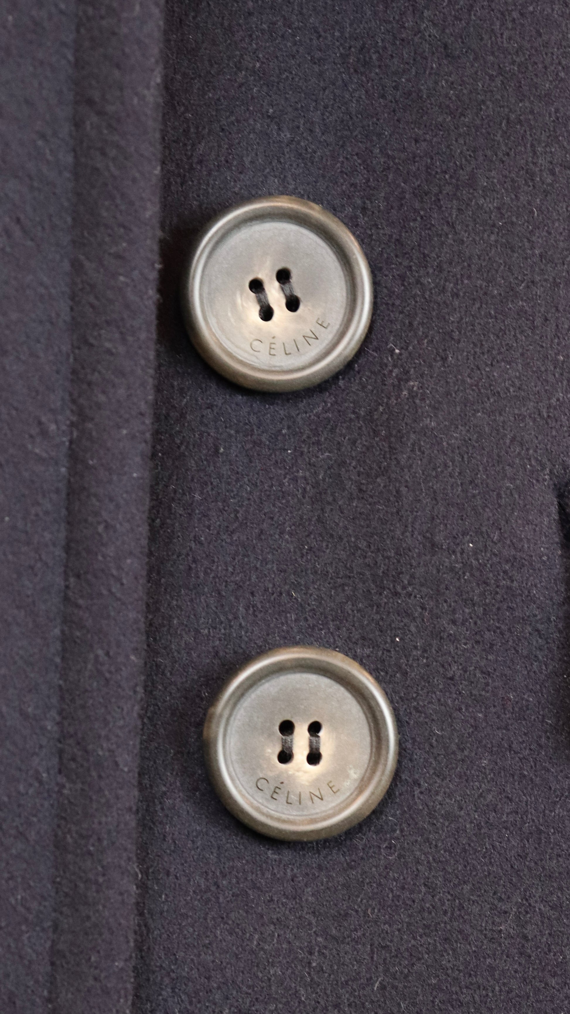 Celine Navy Blue Wool Button Up Coat