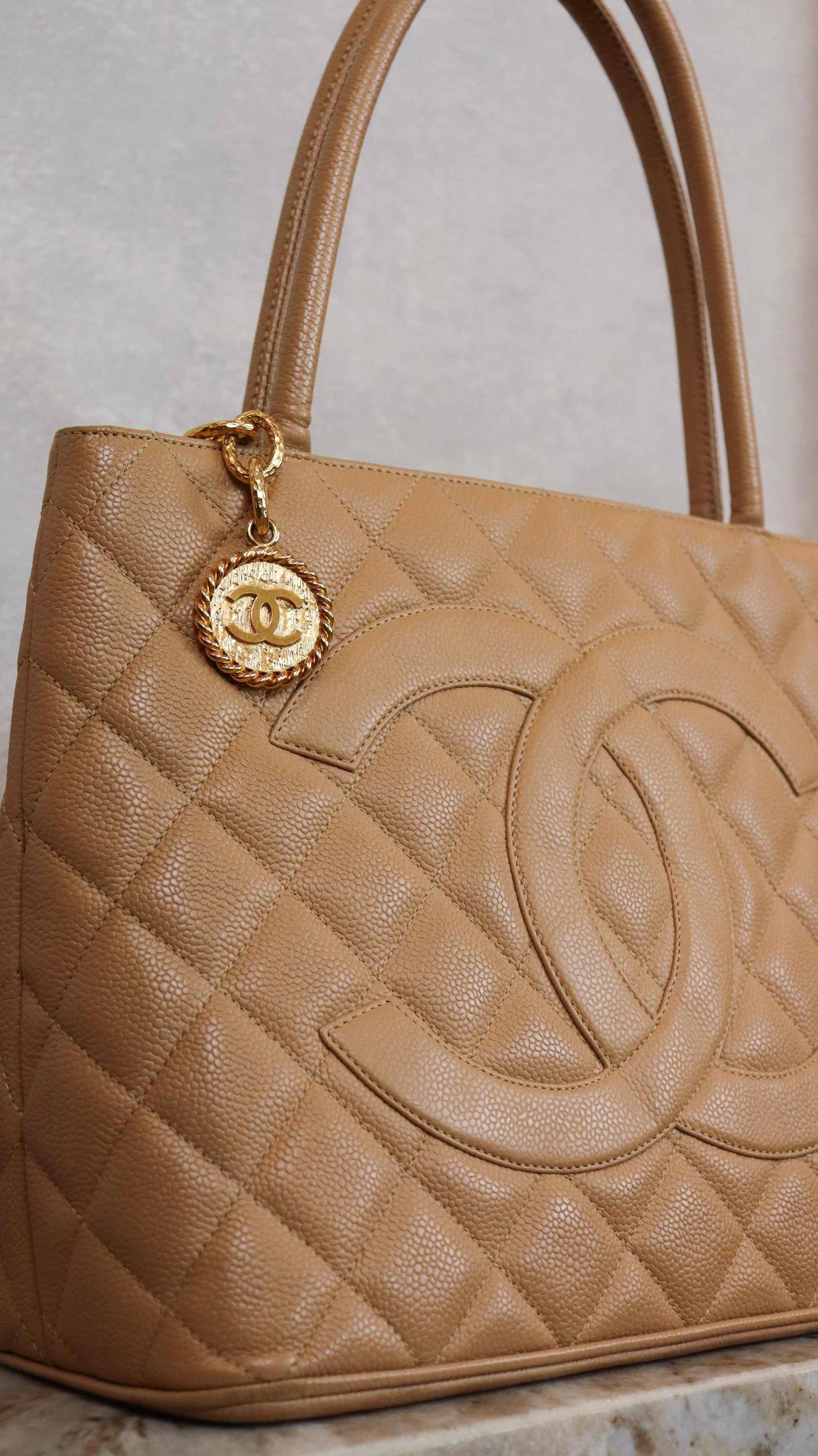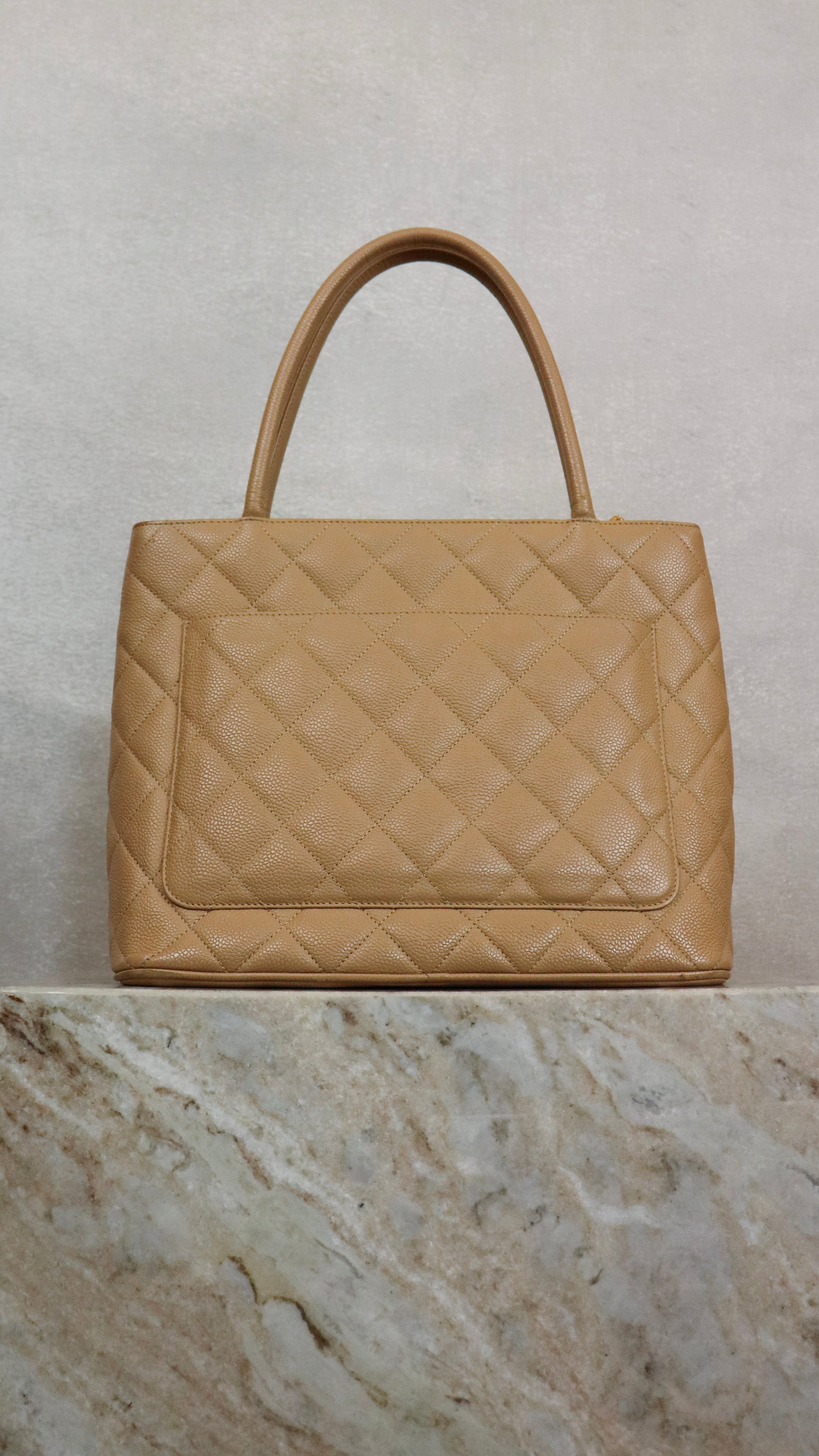 Beige Medallion Tote w/ Caviar Leather and Gold Hardware