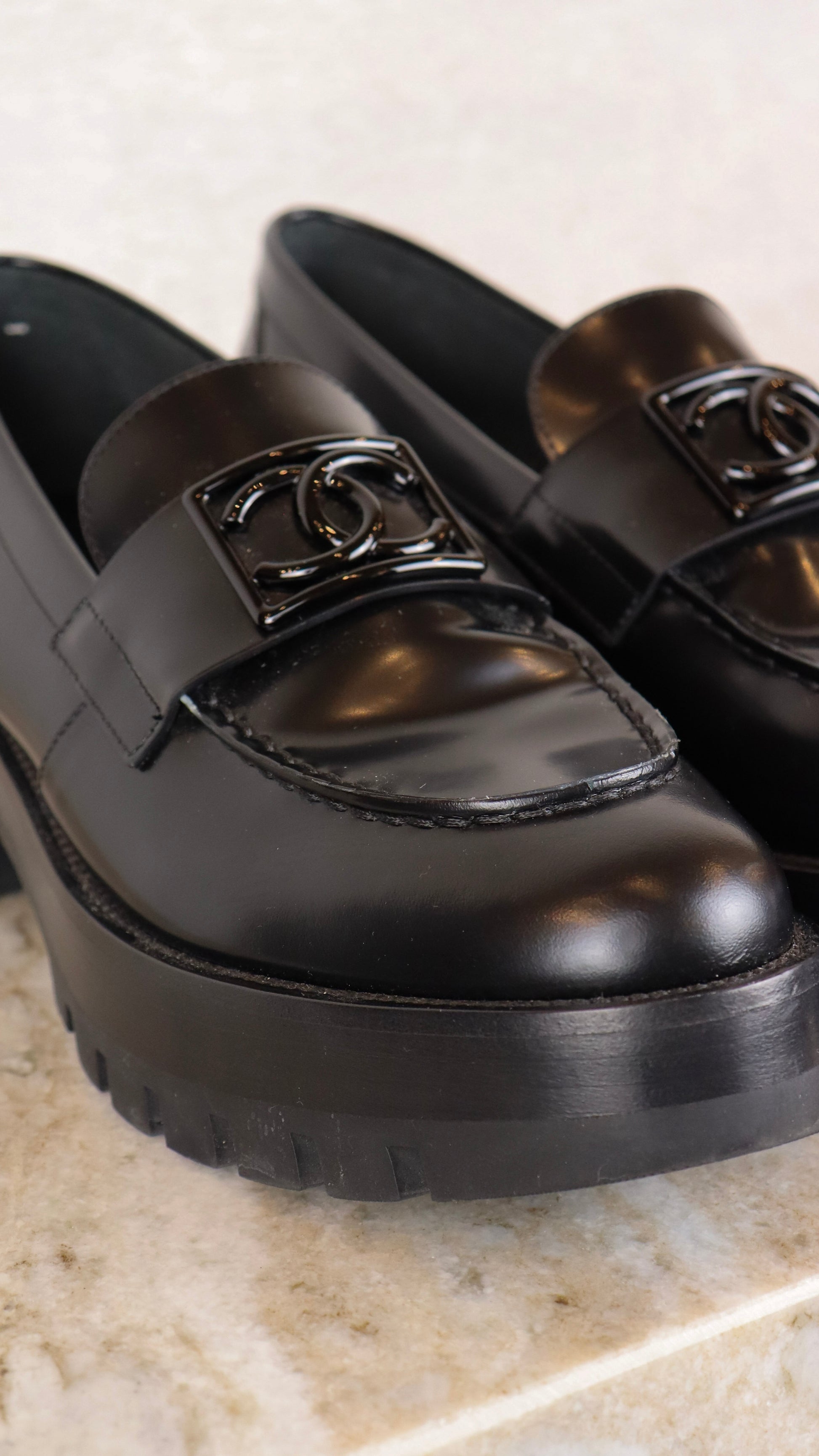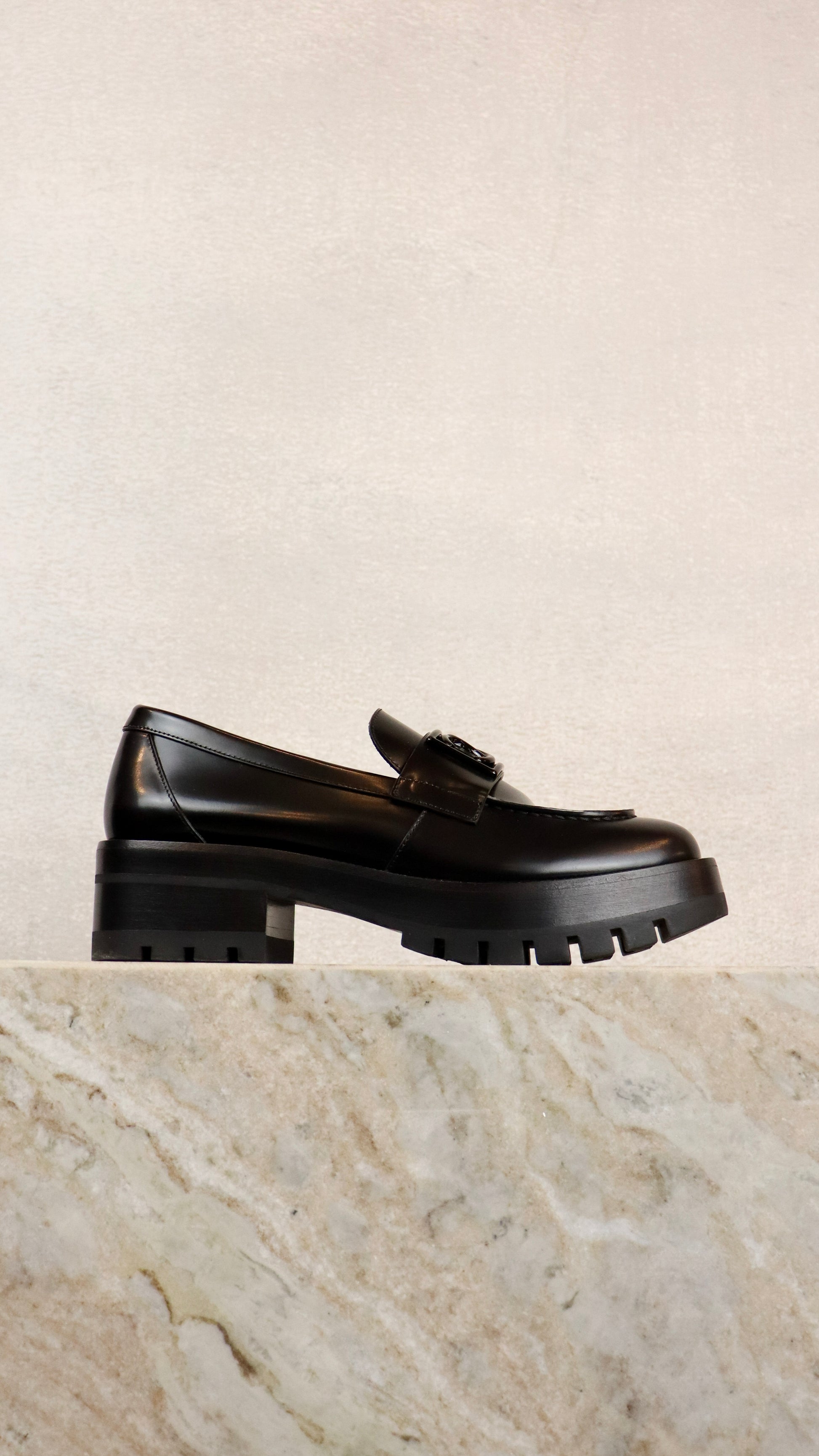 Chunky Loafer in Black Leather with Black Glossy Logo