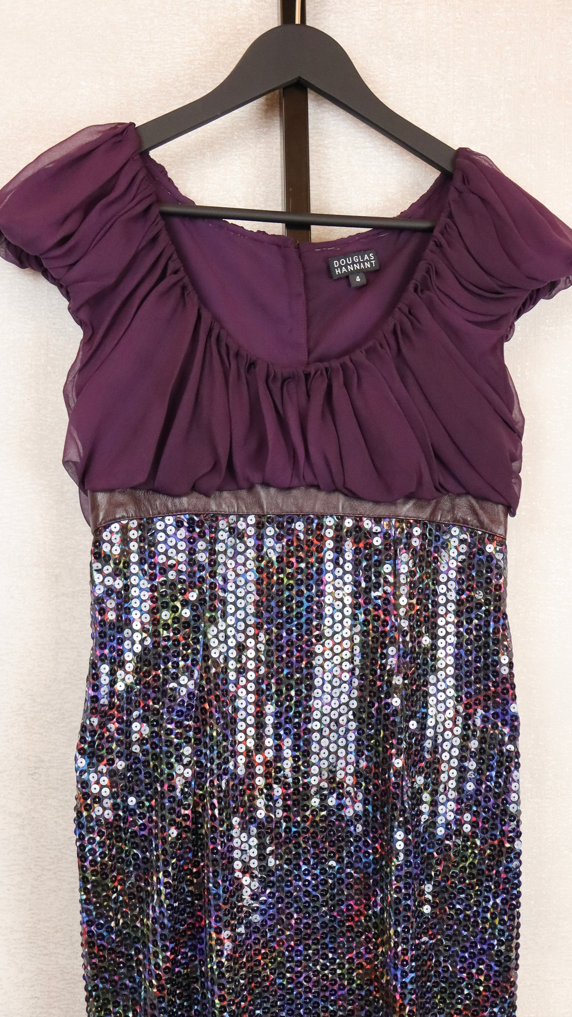 Purple Dress w/ Puff Sleeves and Multi Colour Sequins