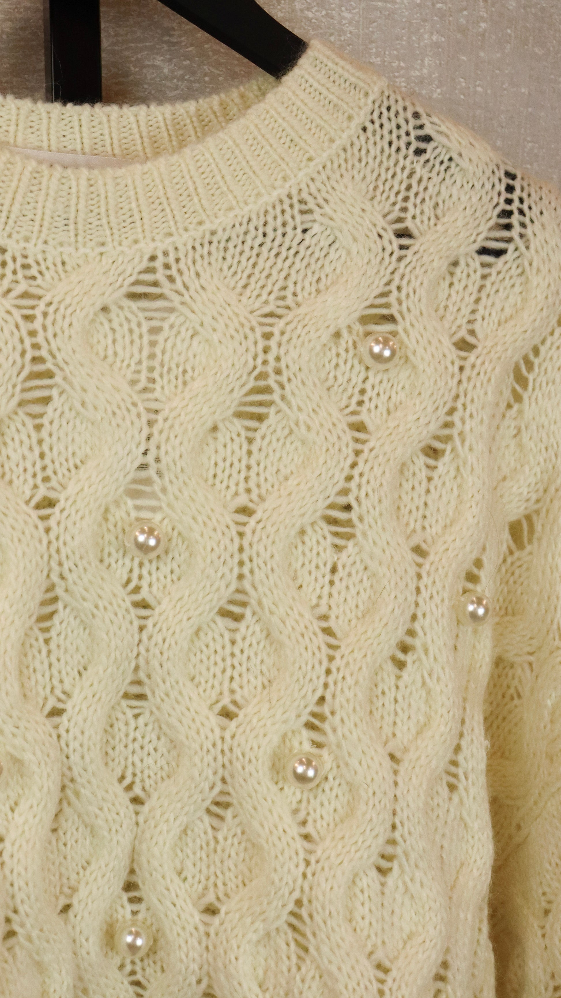Cream Knit Sweater w/ Pearls All Throughout