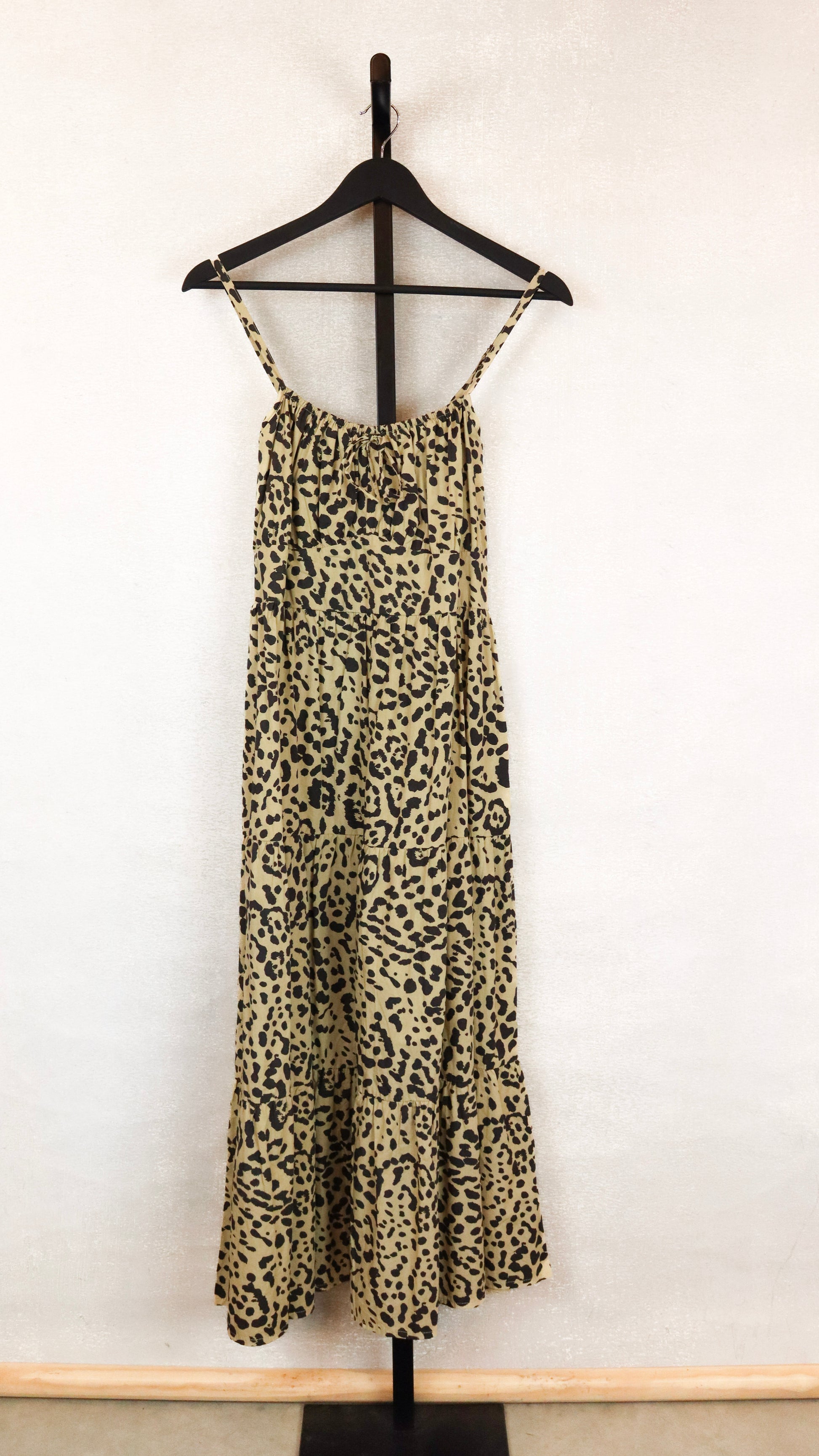 Leopard Print Loose Midi Dress w/ Shirred Back