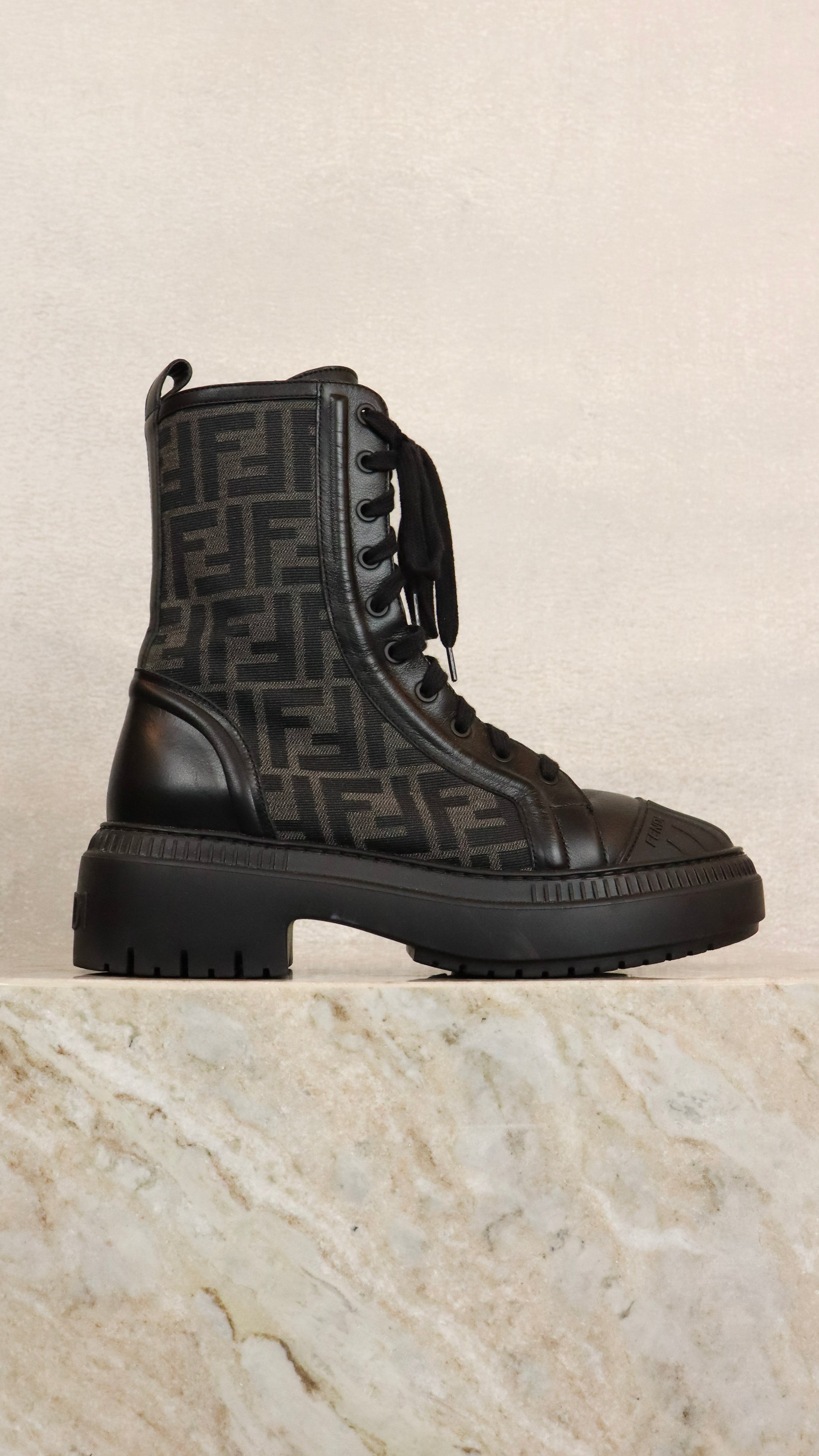 Black Monogram Heeled Combat Boot