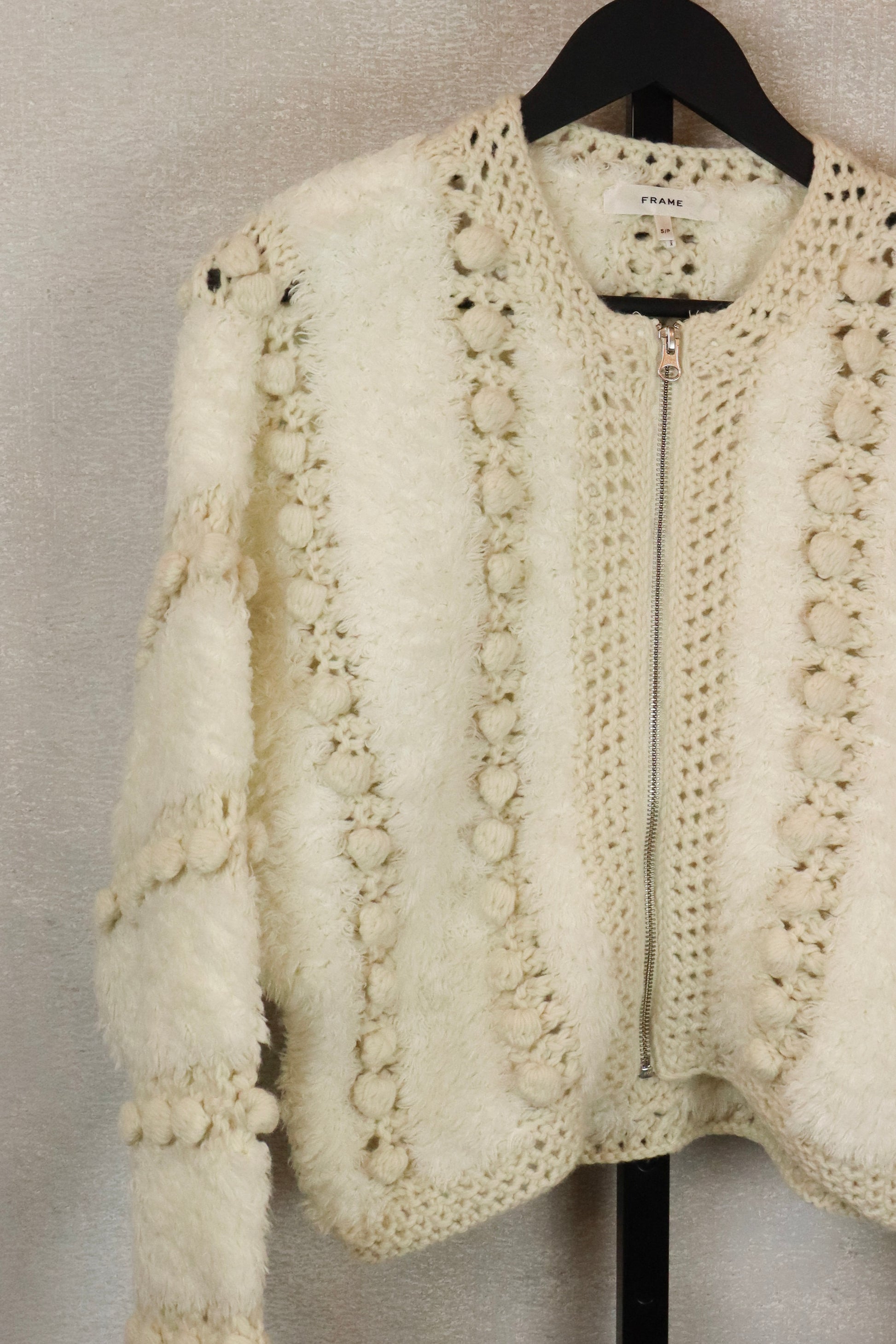 Beige Frame Tufted Zip Up Cardigan
