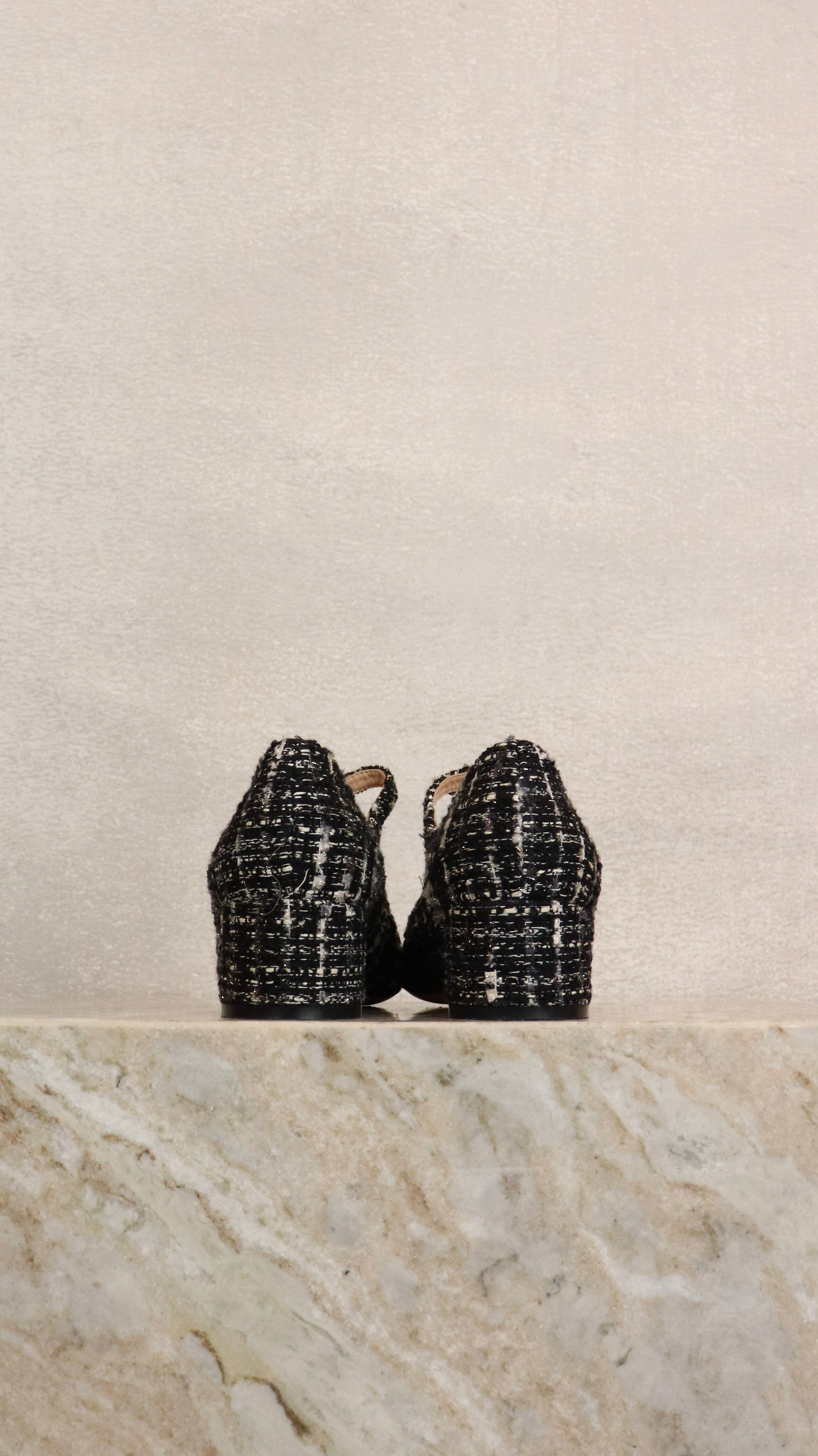 Black/White Tweed Round Toe Heel
