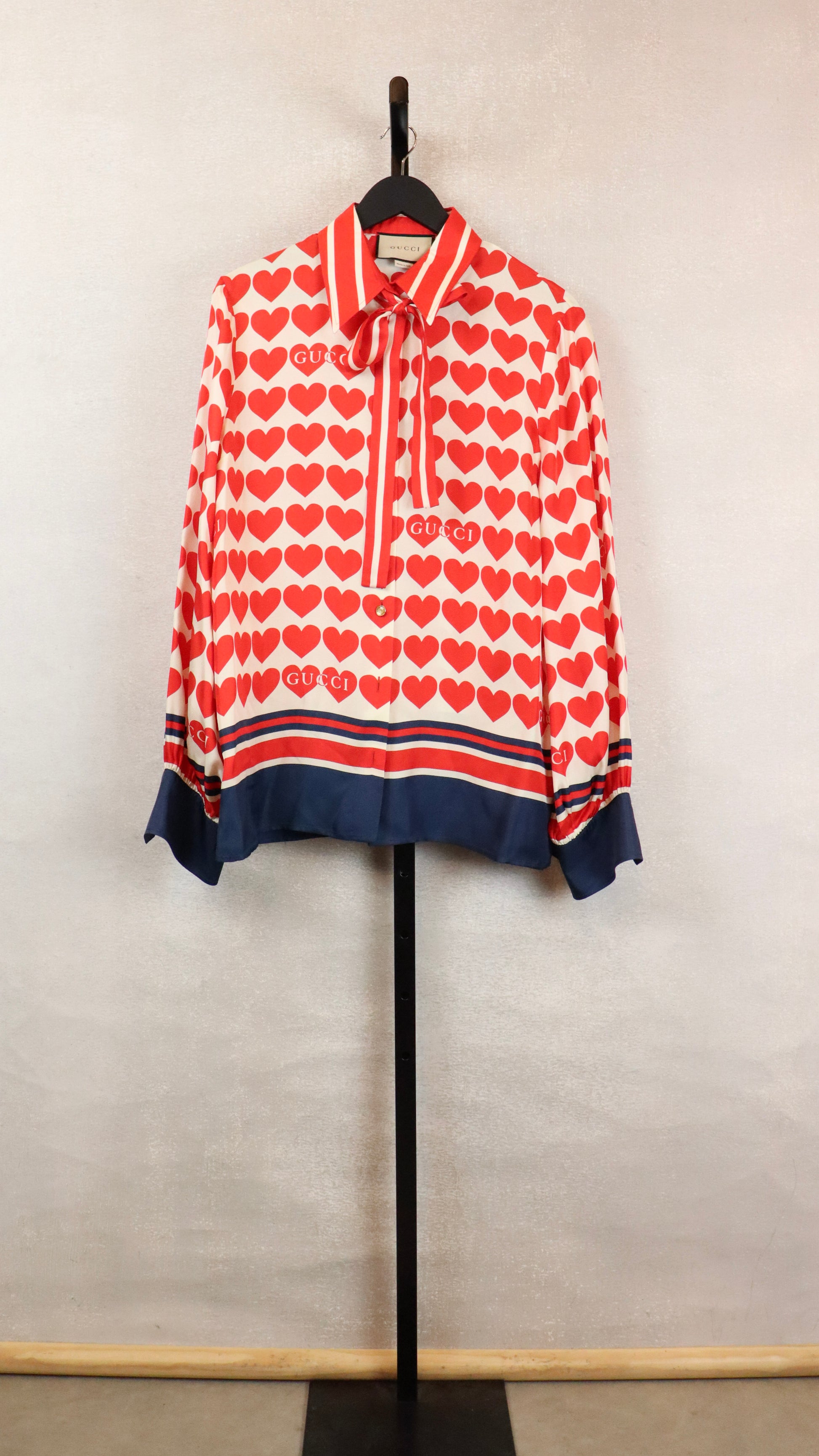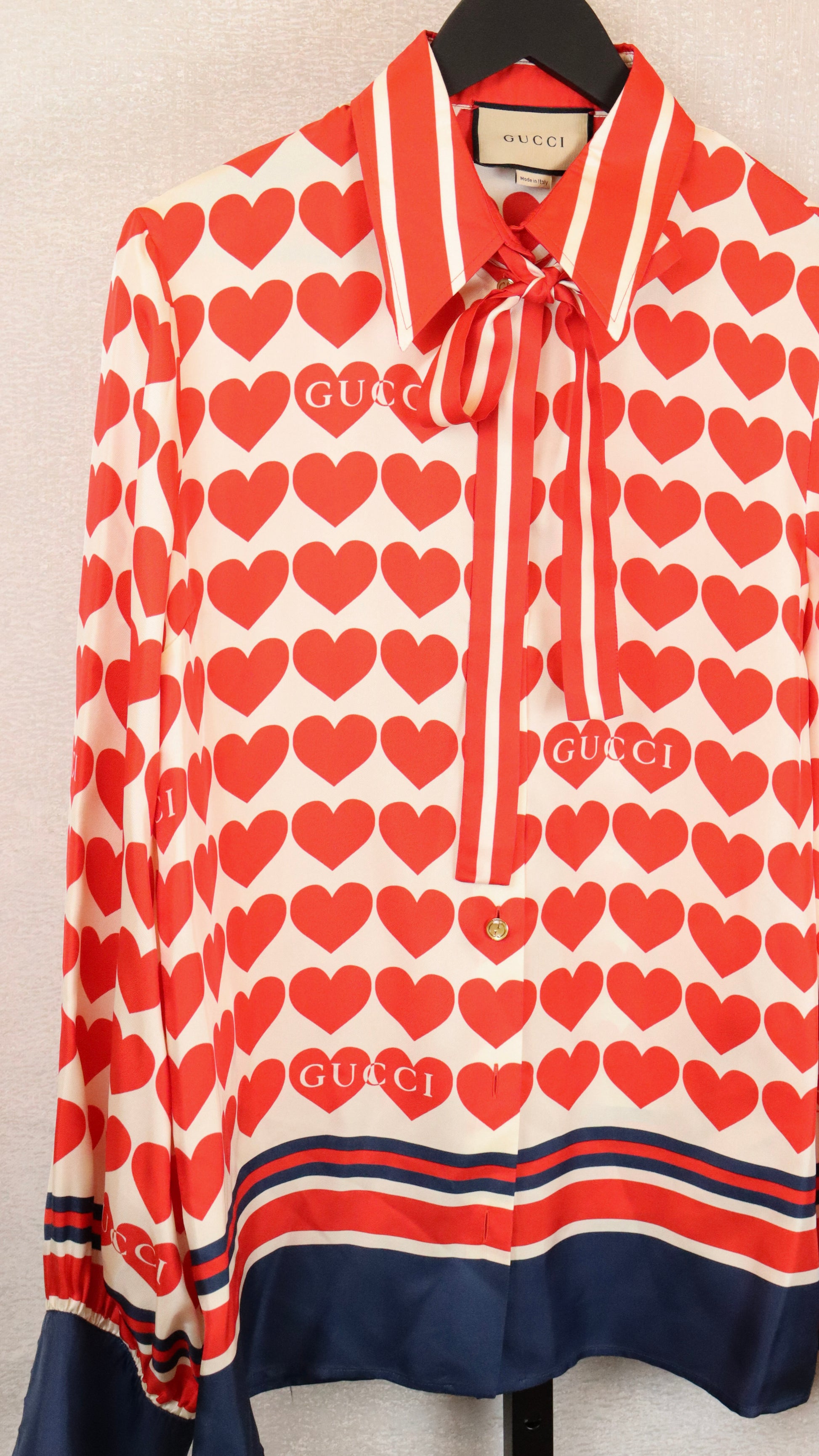 Red and Blue Silk Gucci Blouse w/ Heart Design