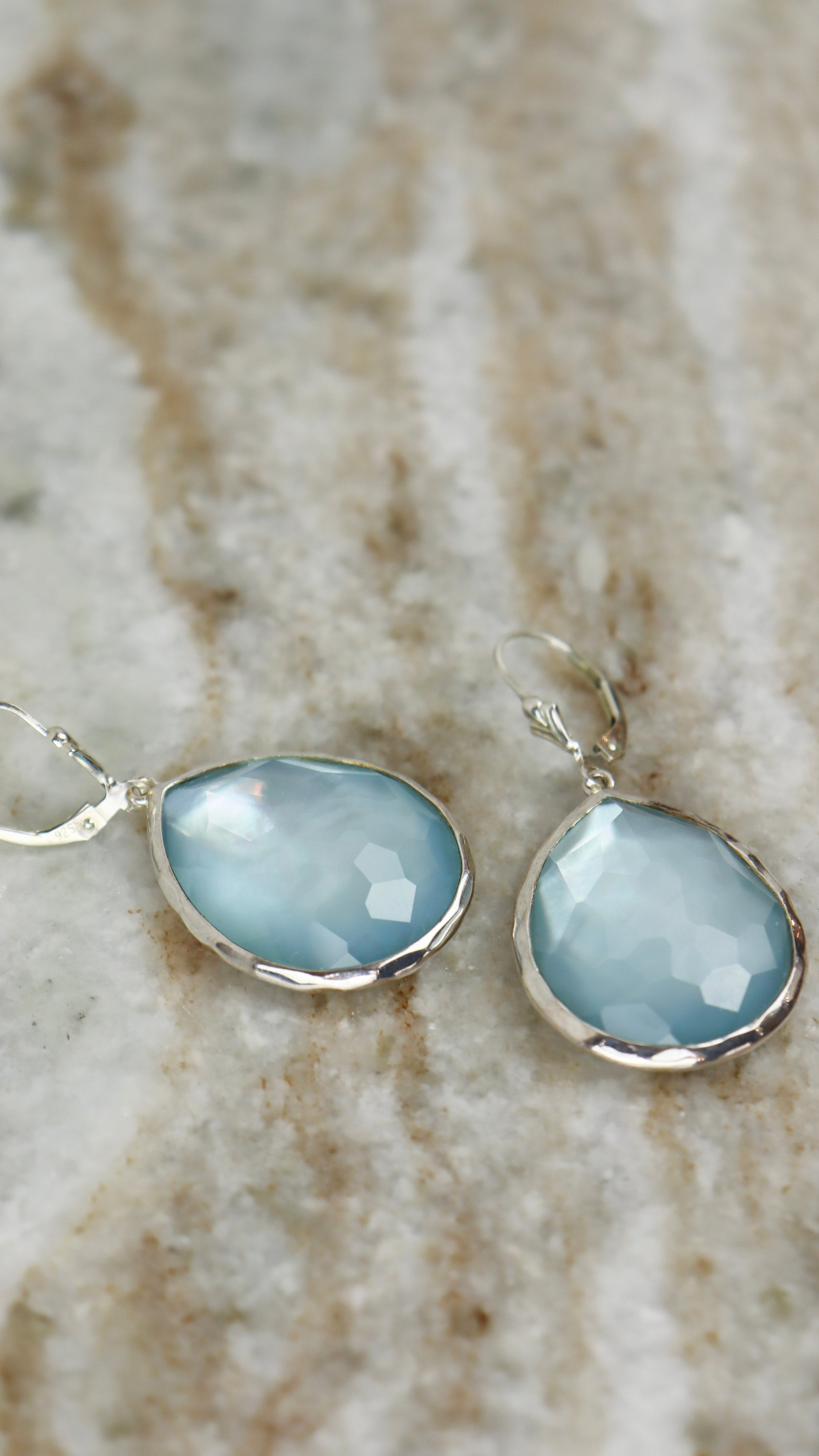 Medium Teardrop Earrings in Turquoise Rock Crystal & Sterling Silver with Pearlescent Backside
