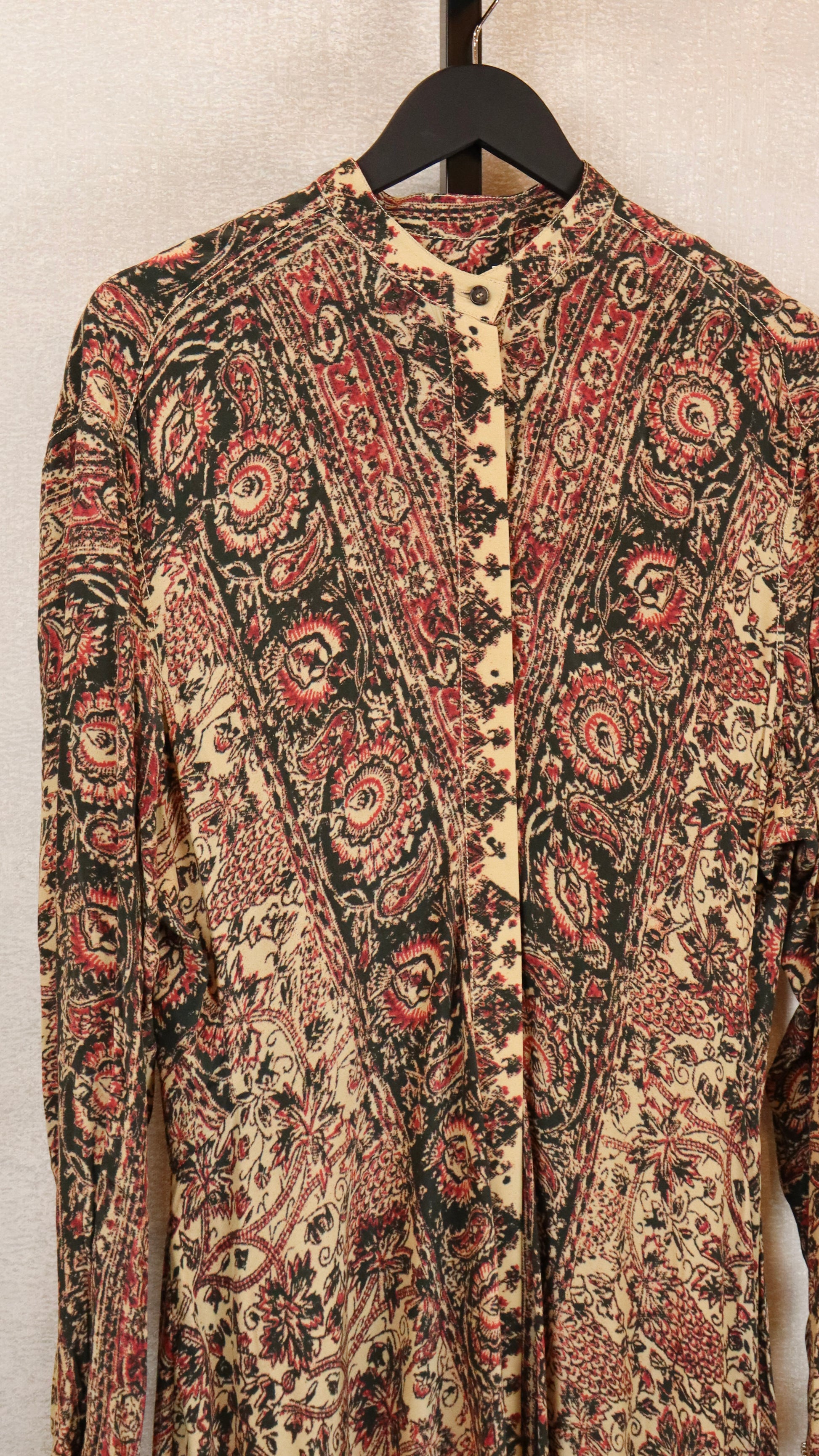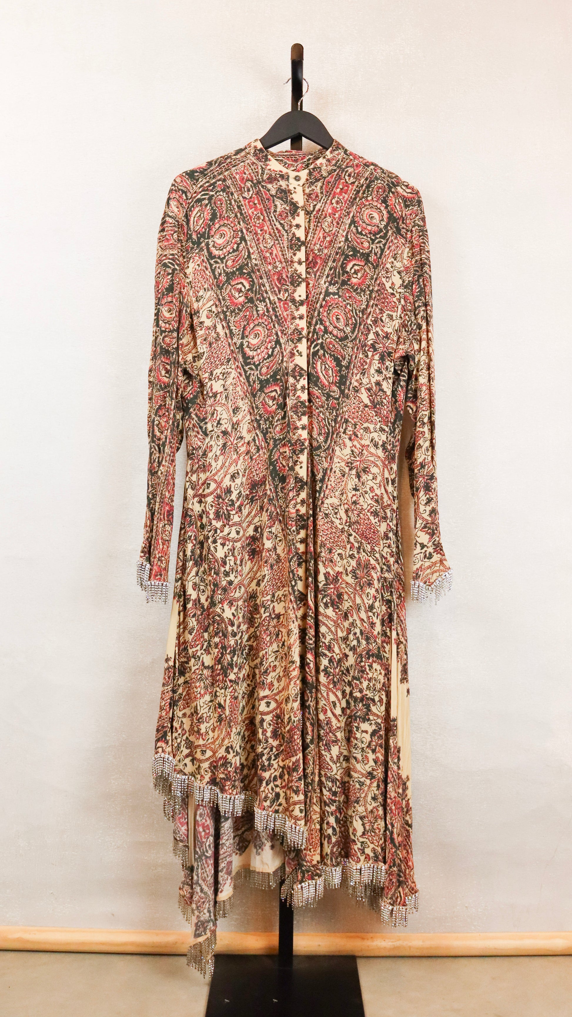 Multi-Colour Button Up Dress w/ Gemmed Fringe