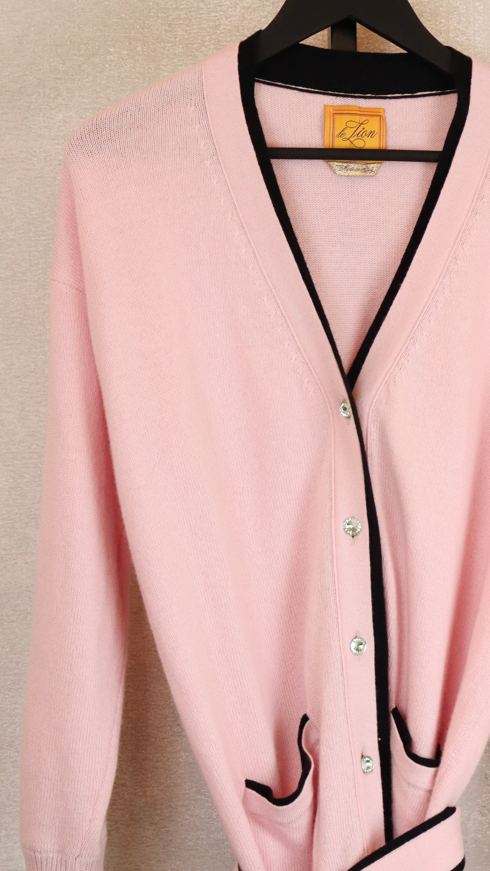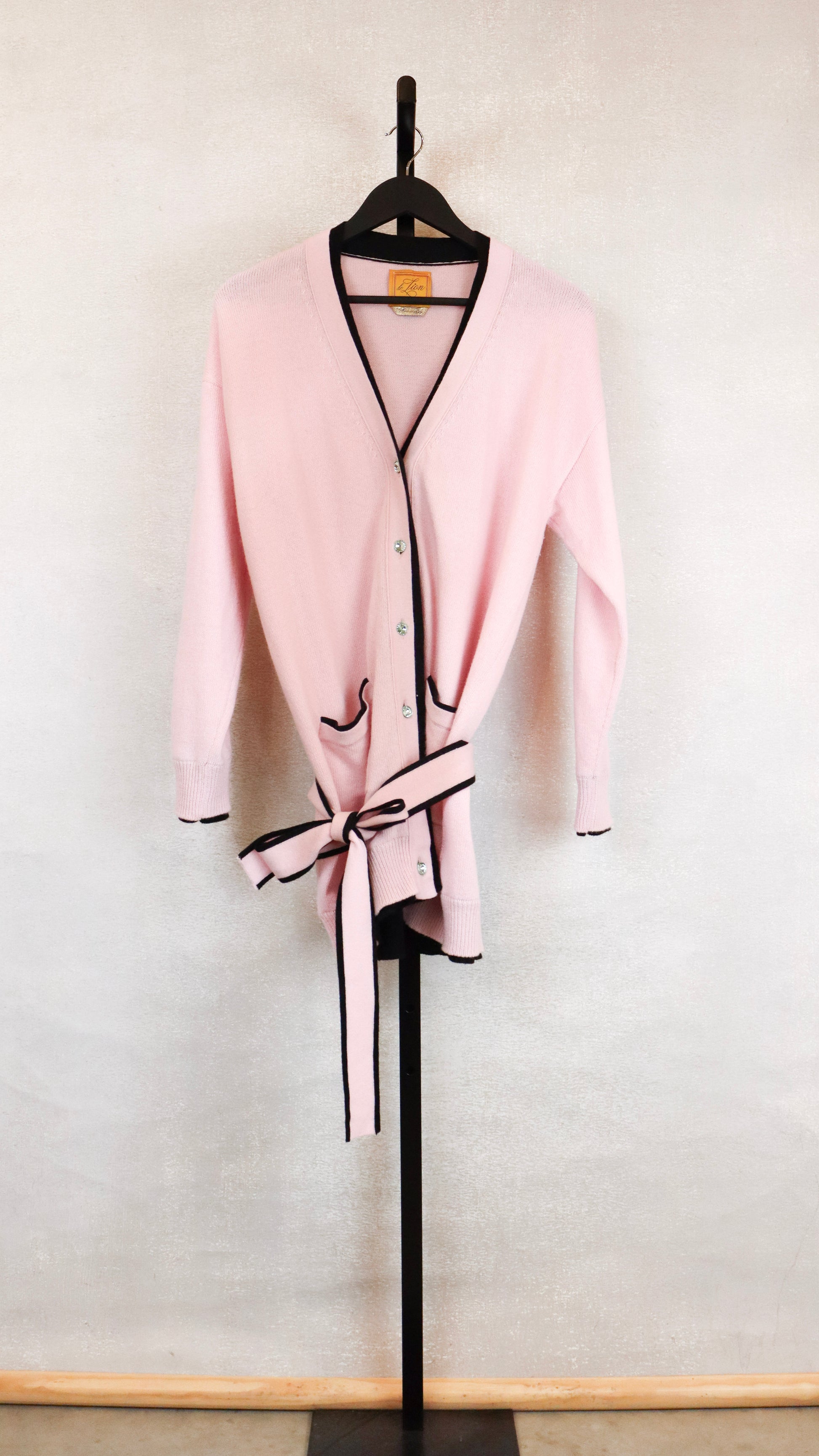 Pink/Black Wool Button Up Cardigan w/ Detachable Belt