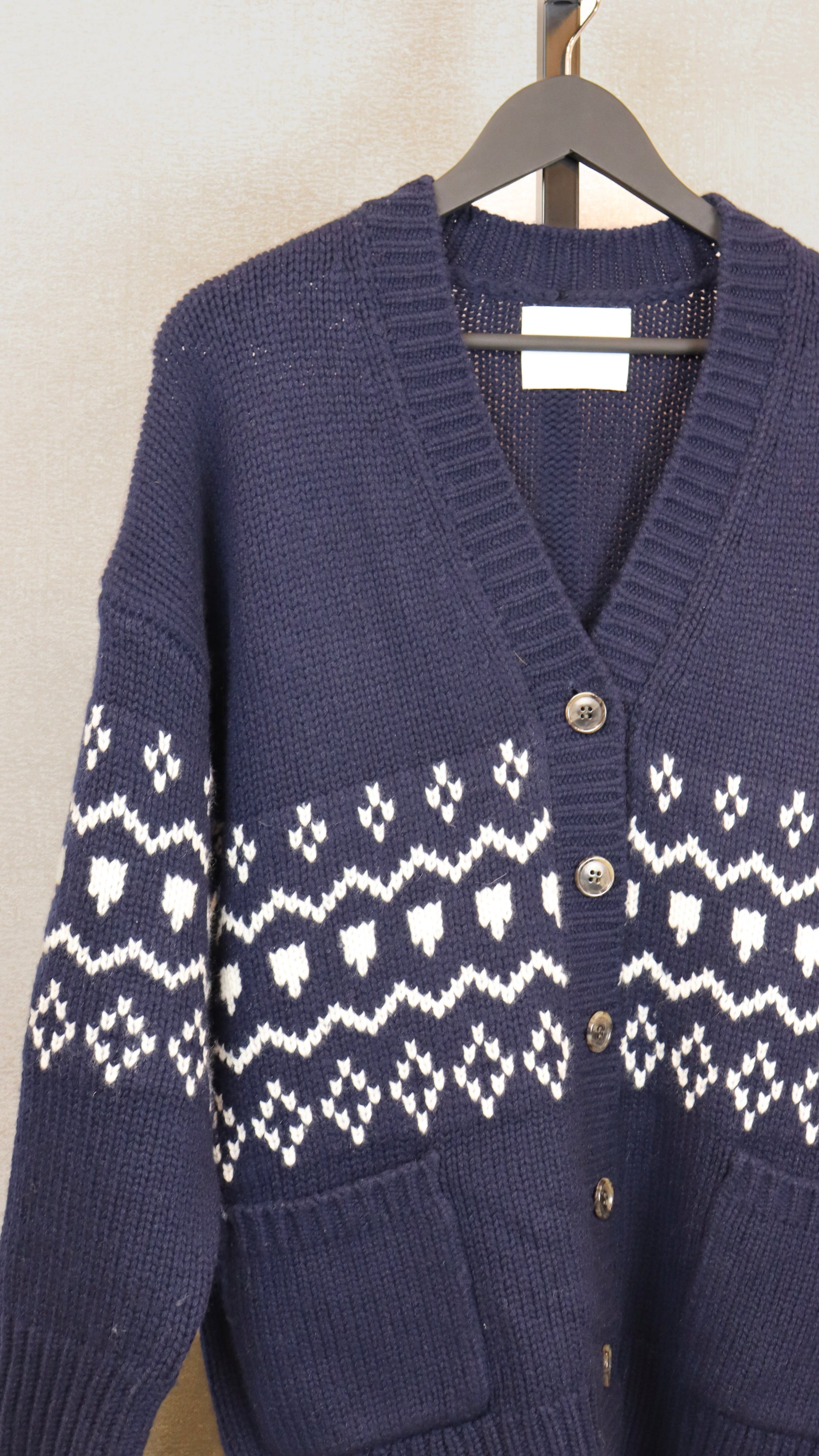 Navy Blue Fair Isle Cashmere Cardigan