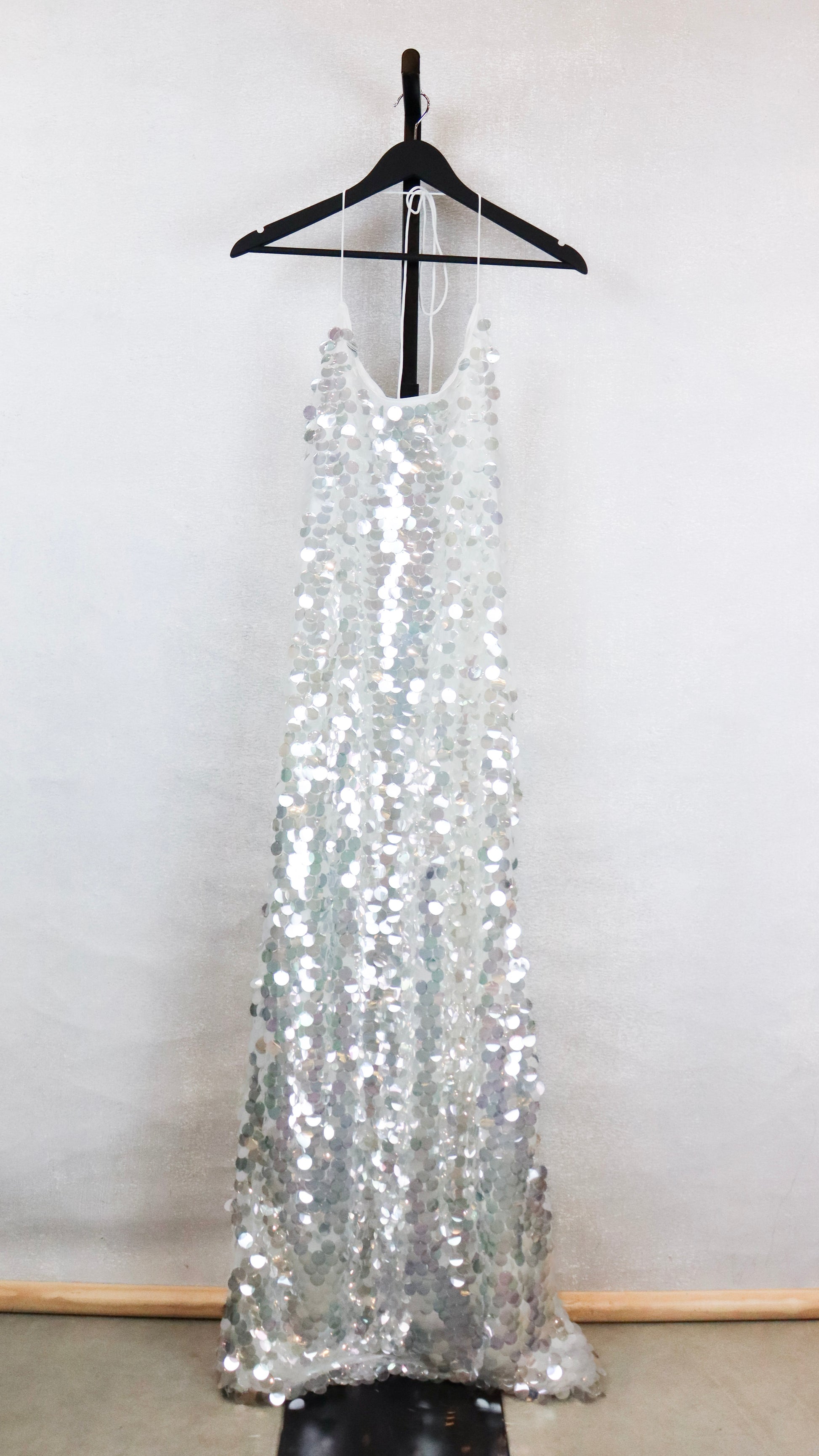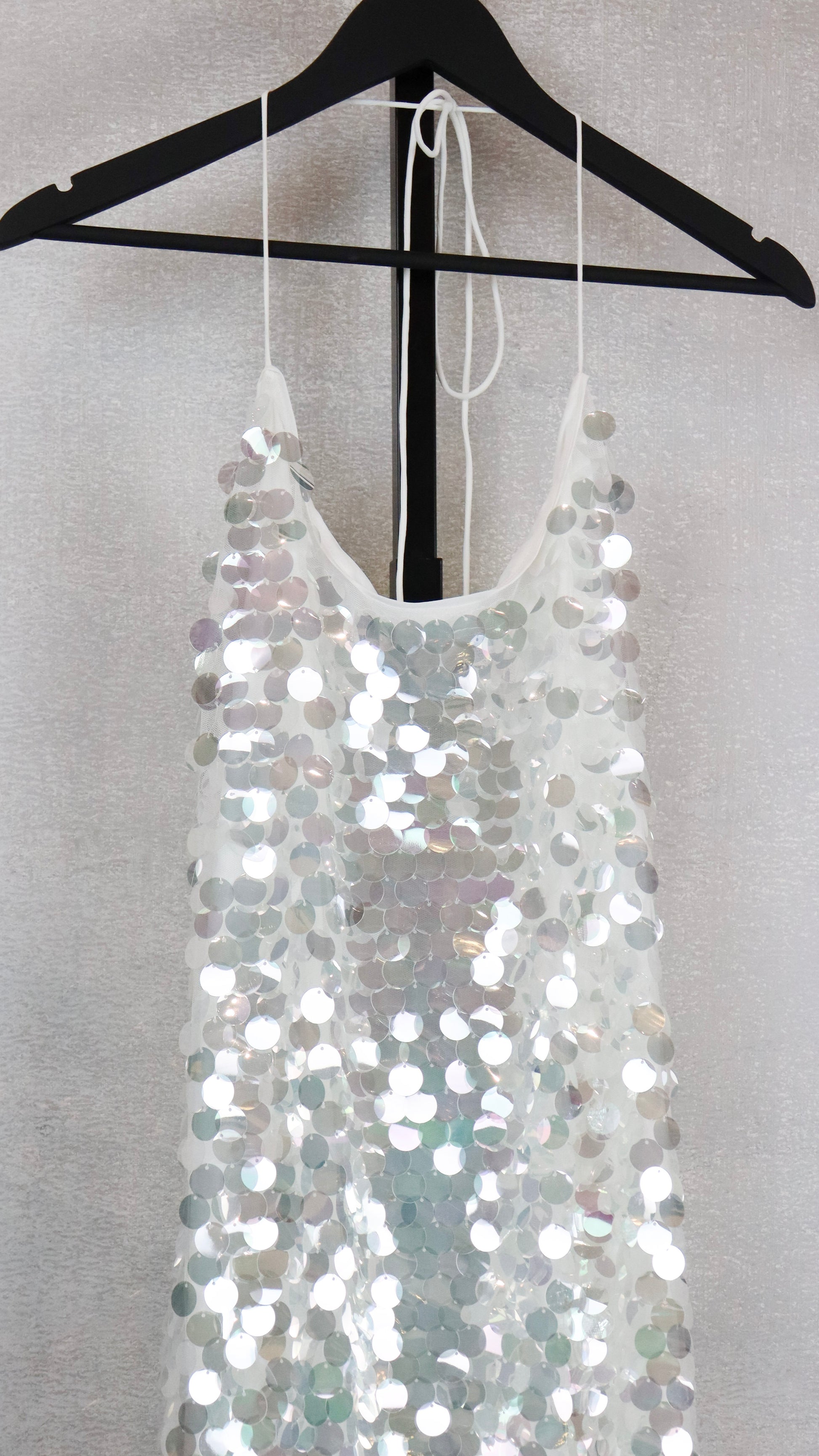 White Silver Sequin Midi Dress w/ Open Back