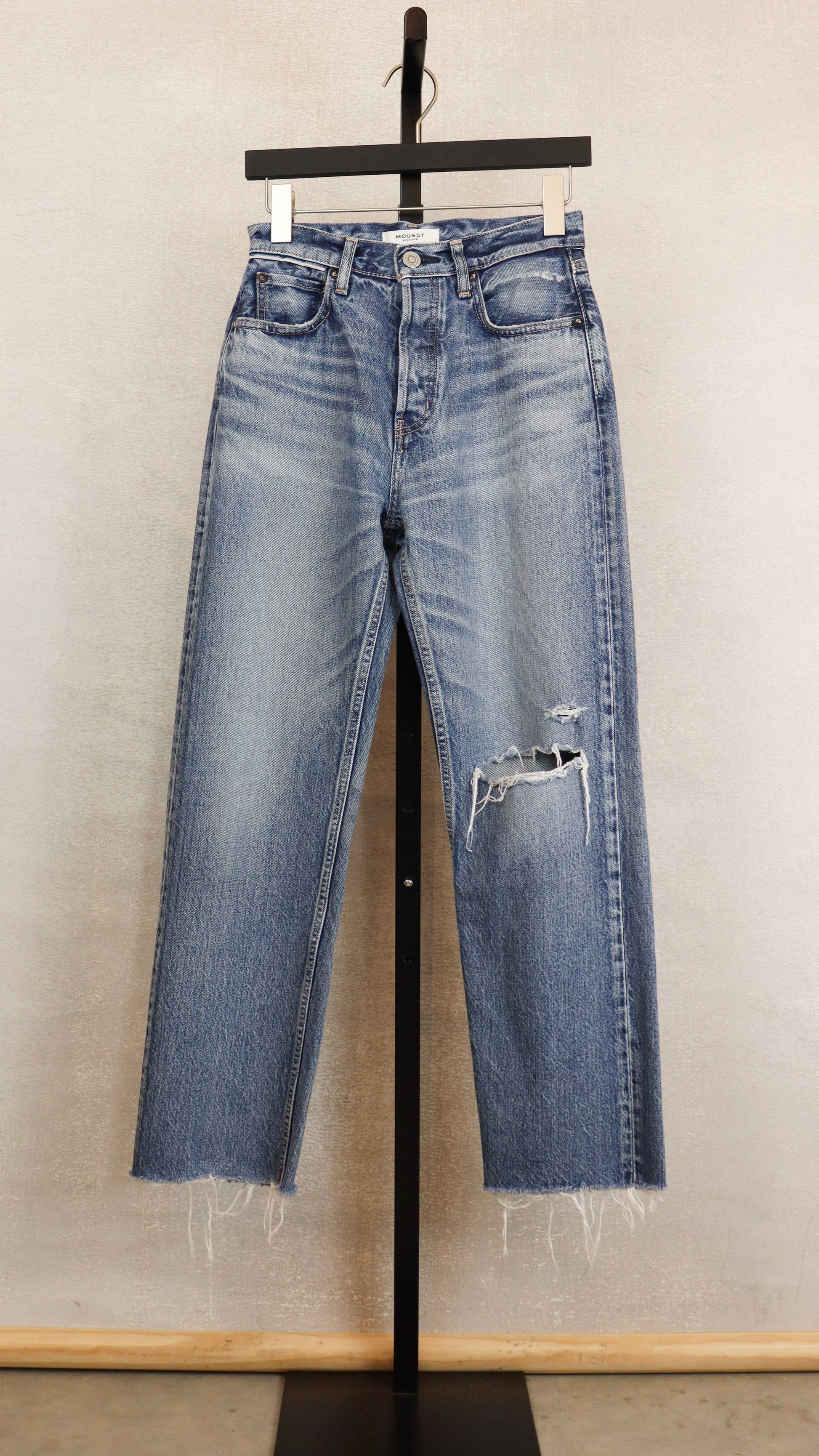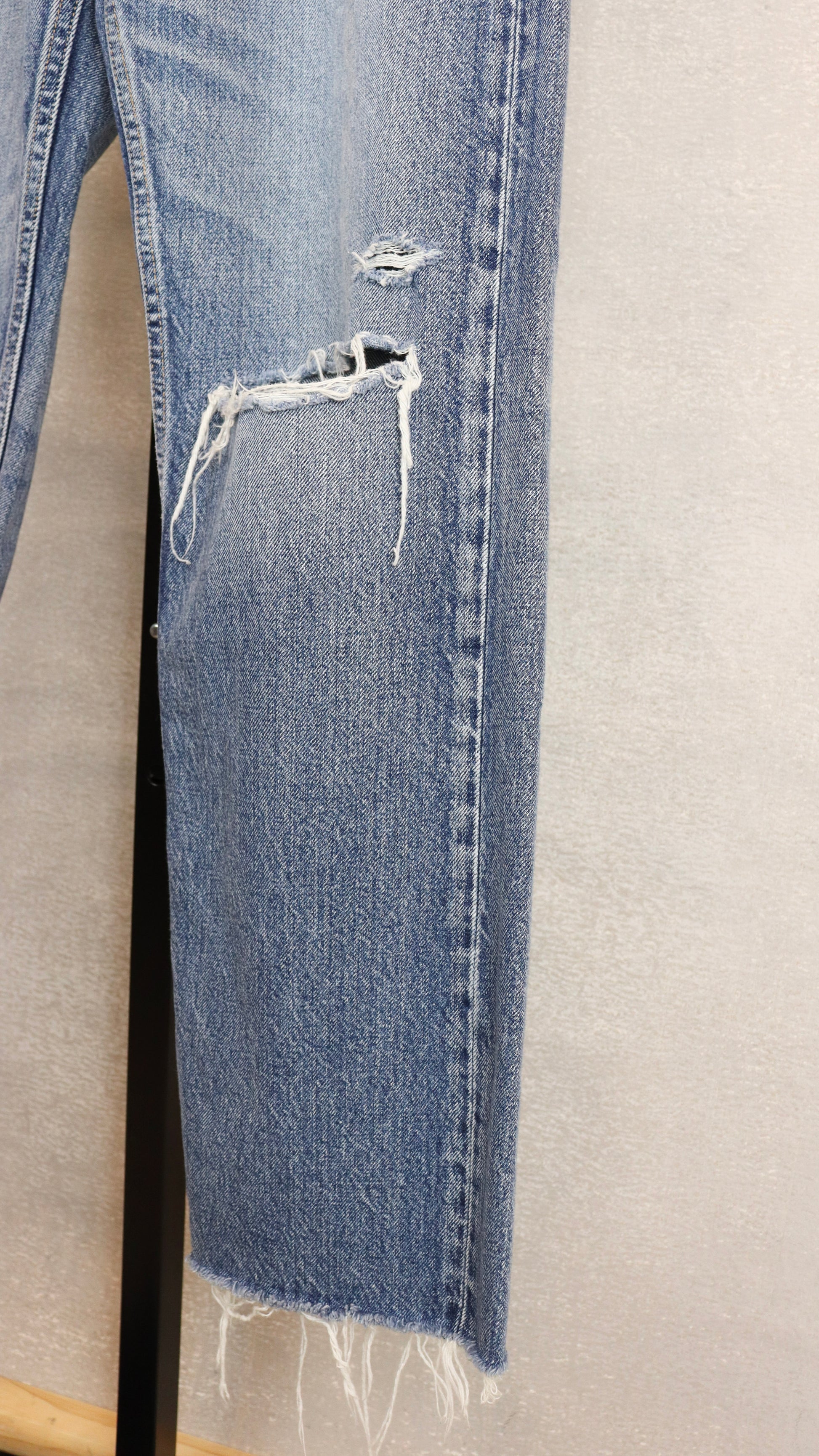 'Vintage' One Knee Distressed Natural Denim Wash Jeans