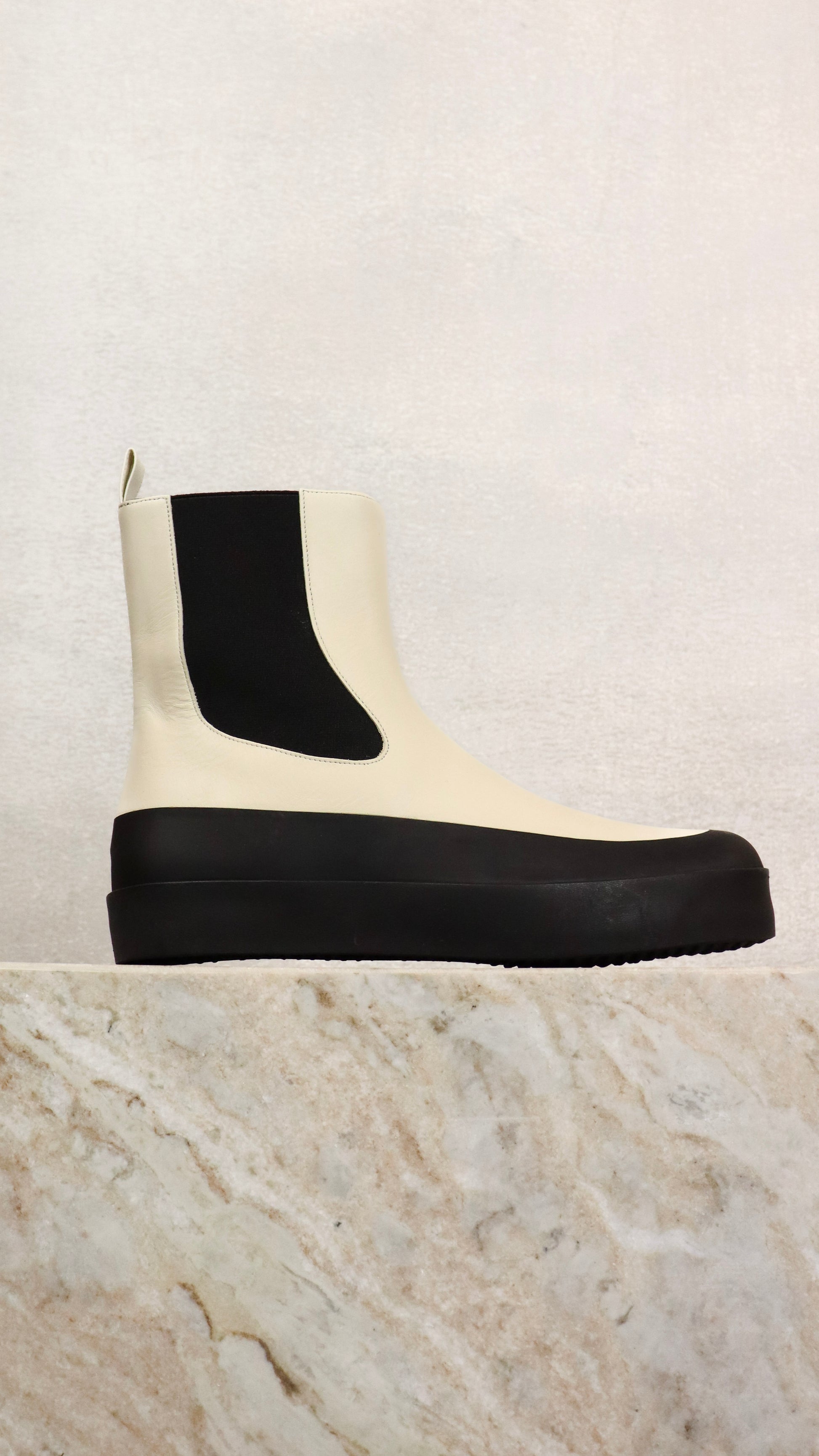 White and Black Chunky Platform Ankle Boot