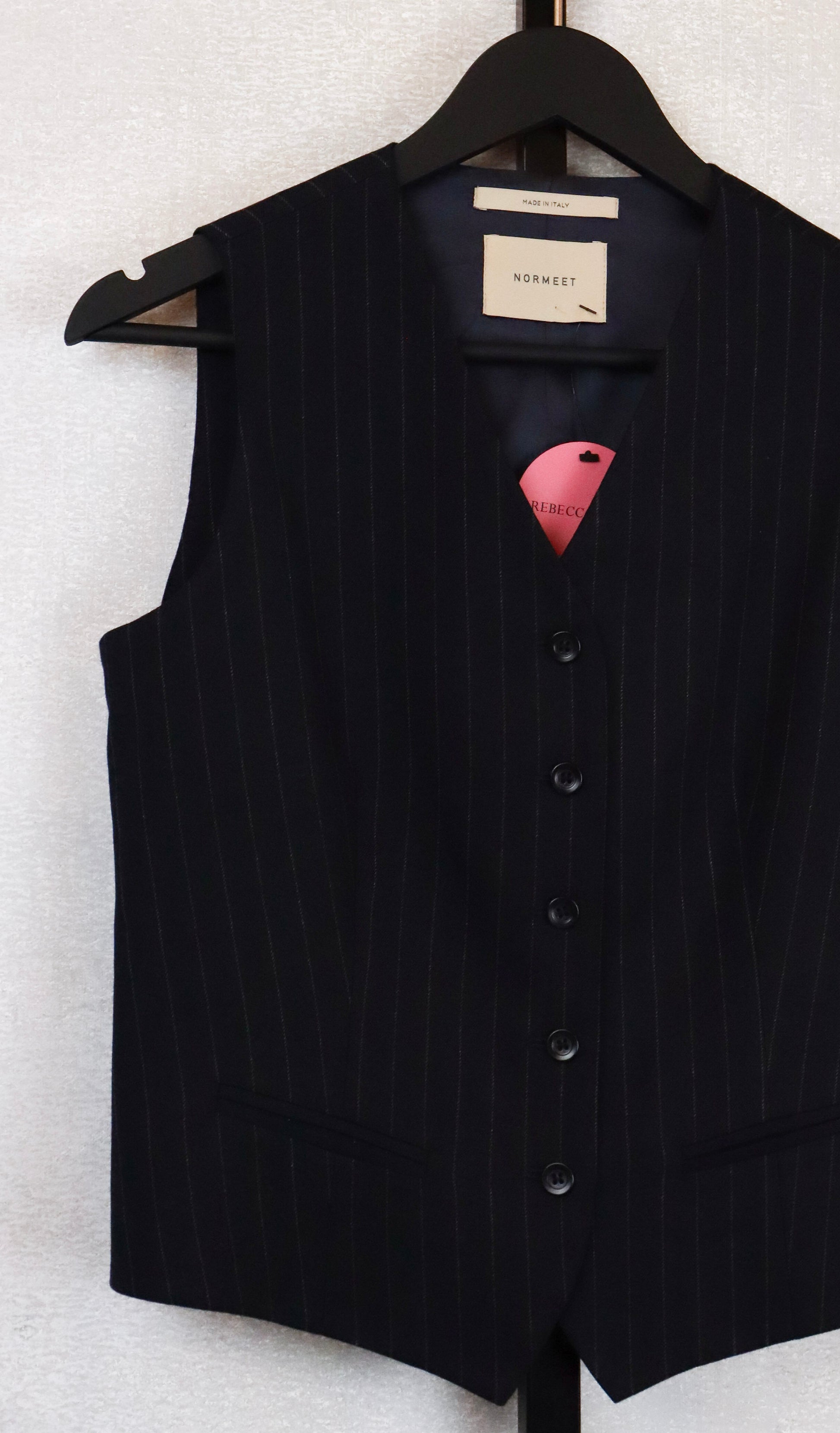 Navy Blue Pinstripe Button Up Vest (RET. $475)