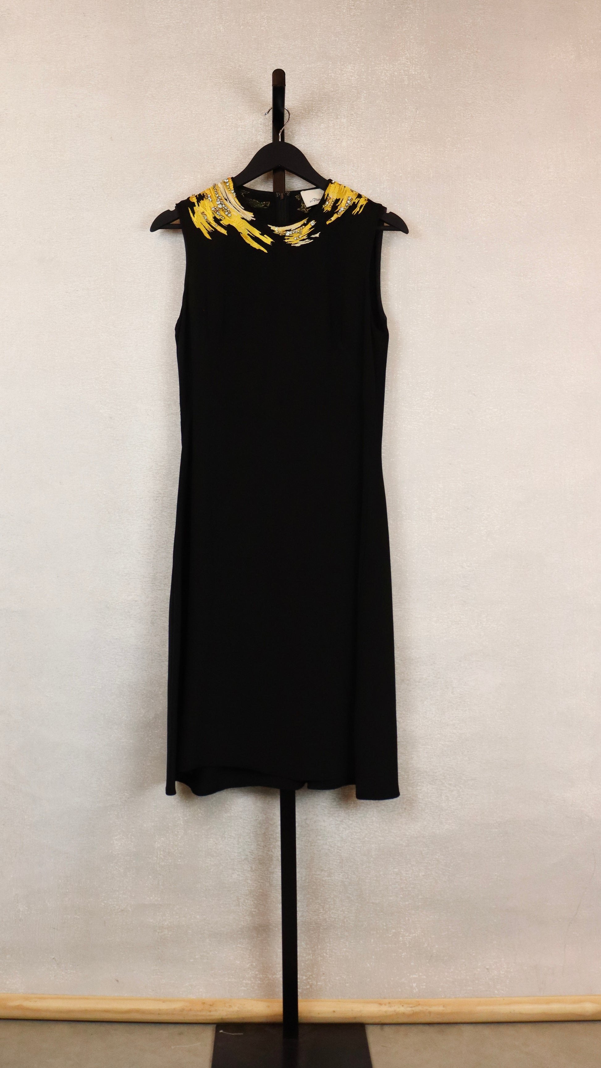 Black Silk Sleeveless Dress w/ Yellow Beaded Neckline