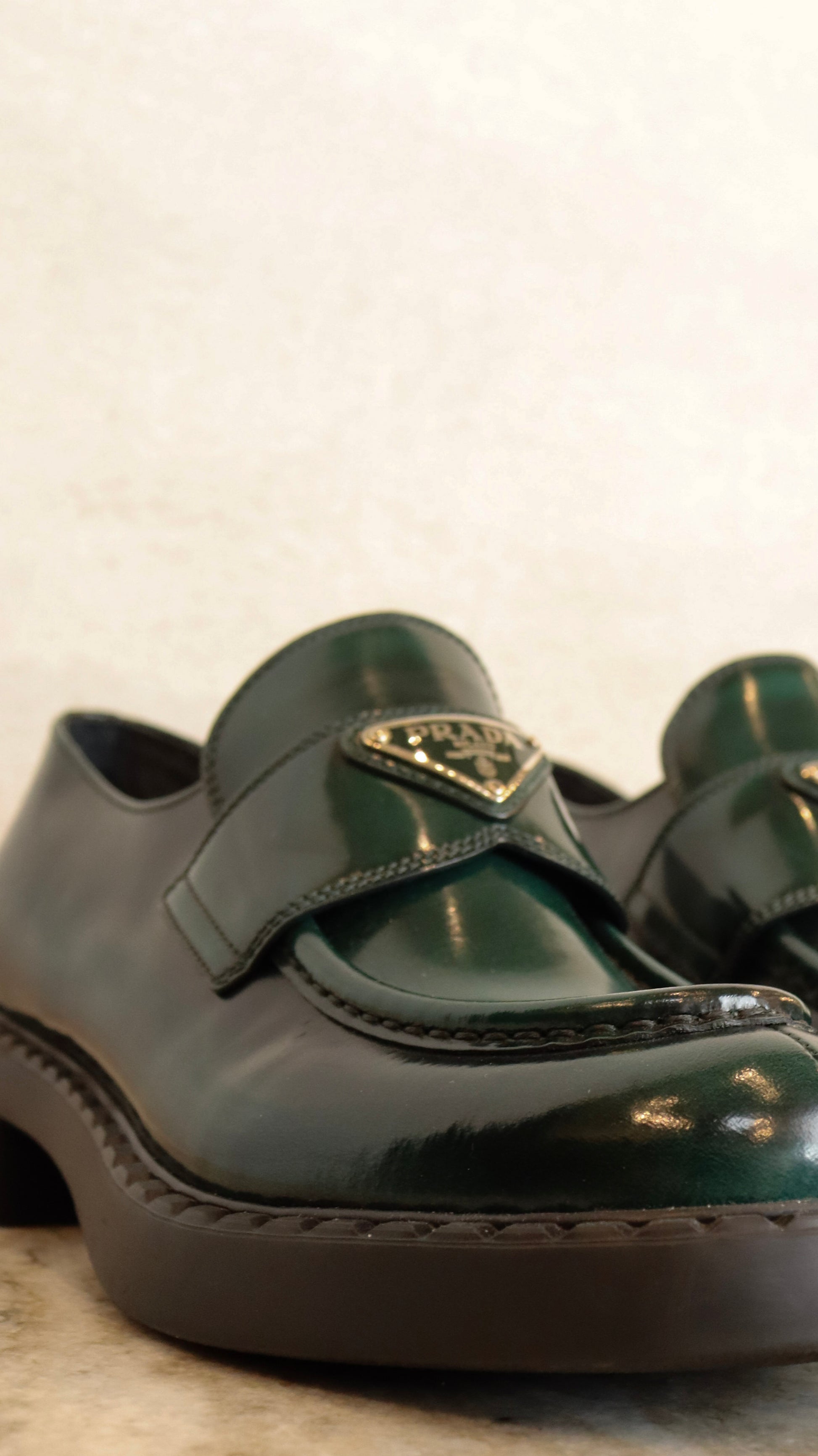Green Chunky Heeled Loafer w/ Silver Hardware