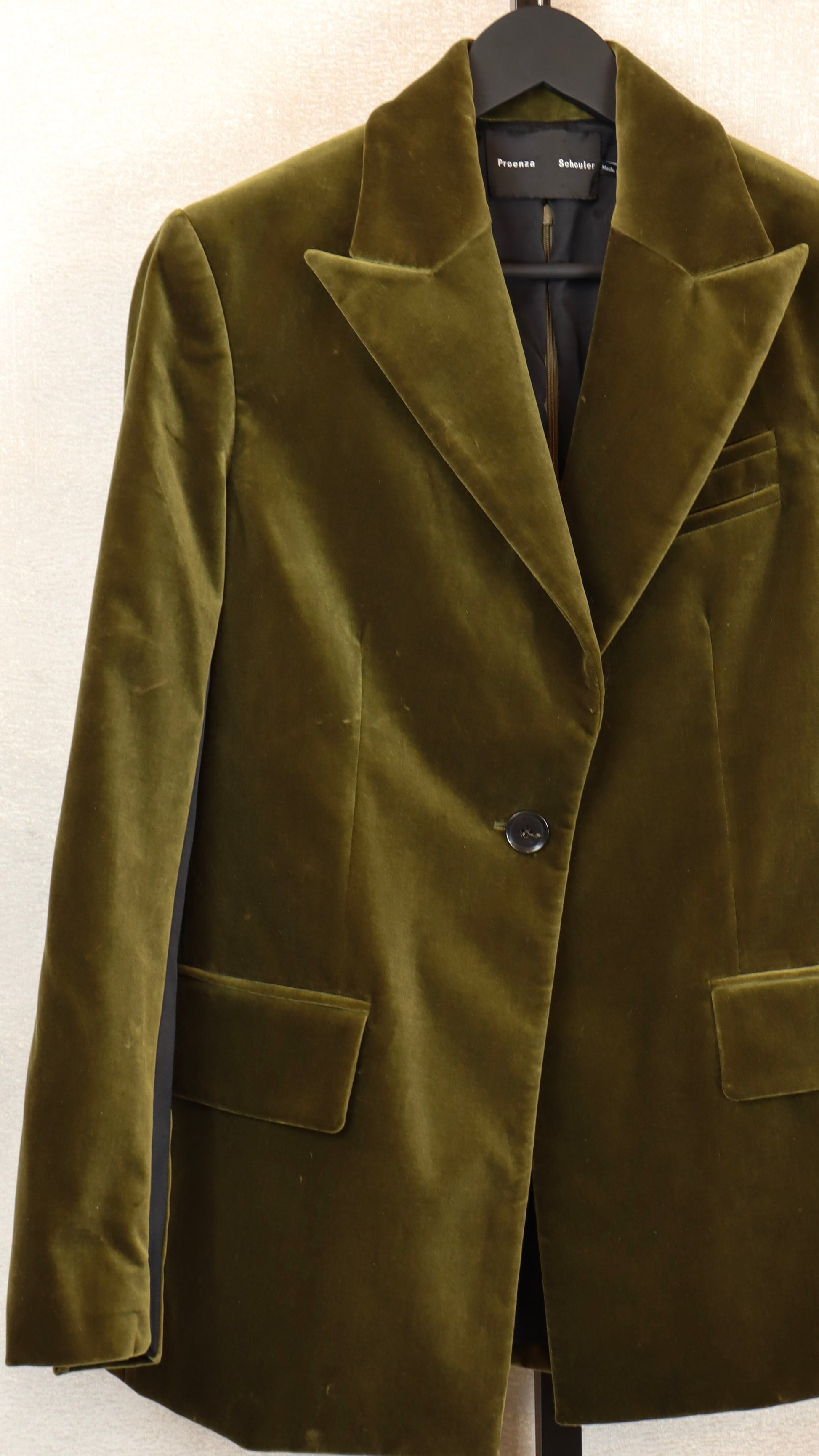 Olive Green Velvet Single Breasted Proenza Schouler Blazer