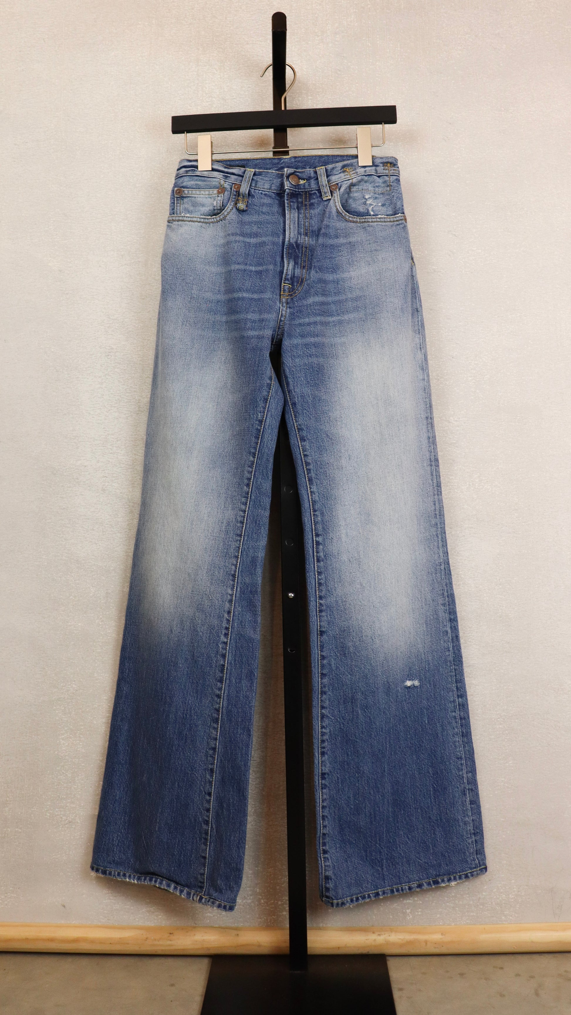 Wide Leg Faded Blue Jeans with Tan Stitching