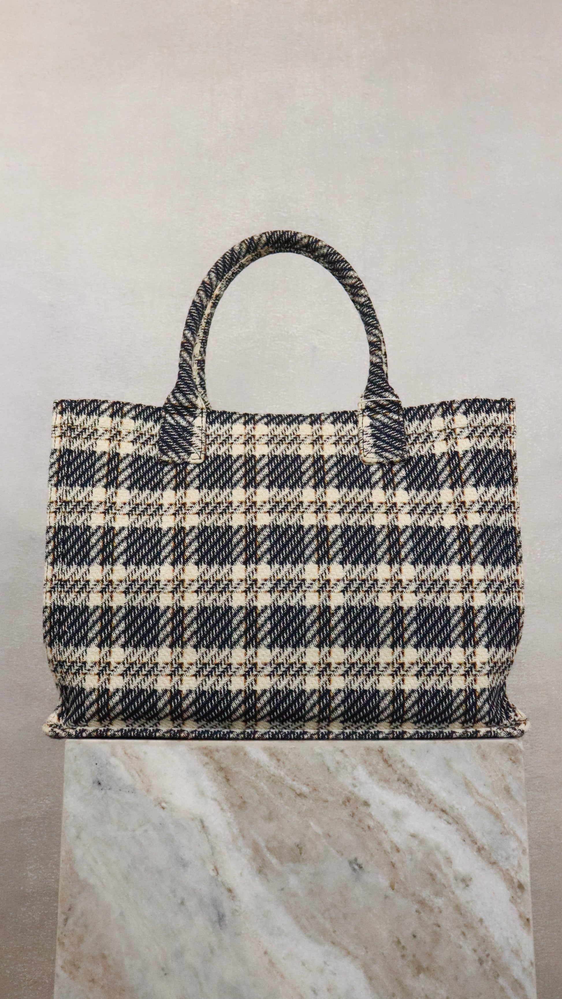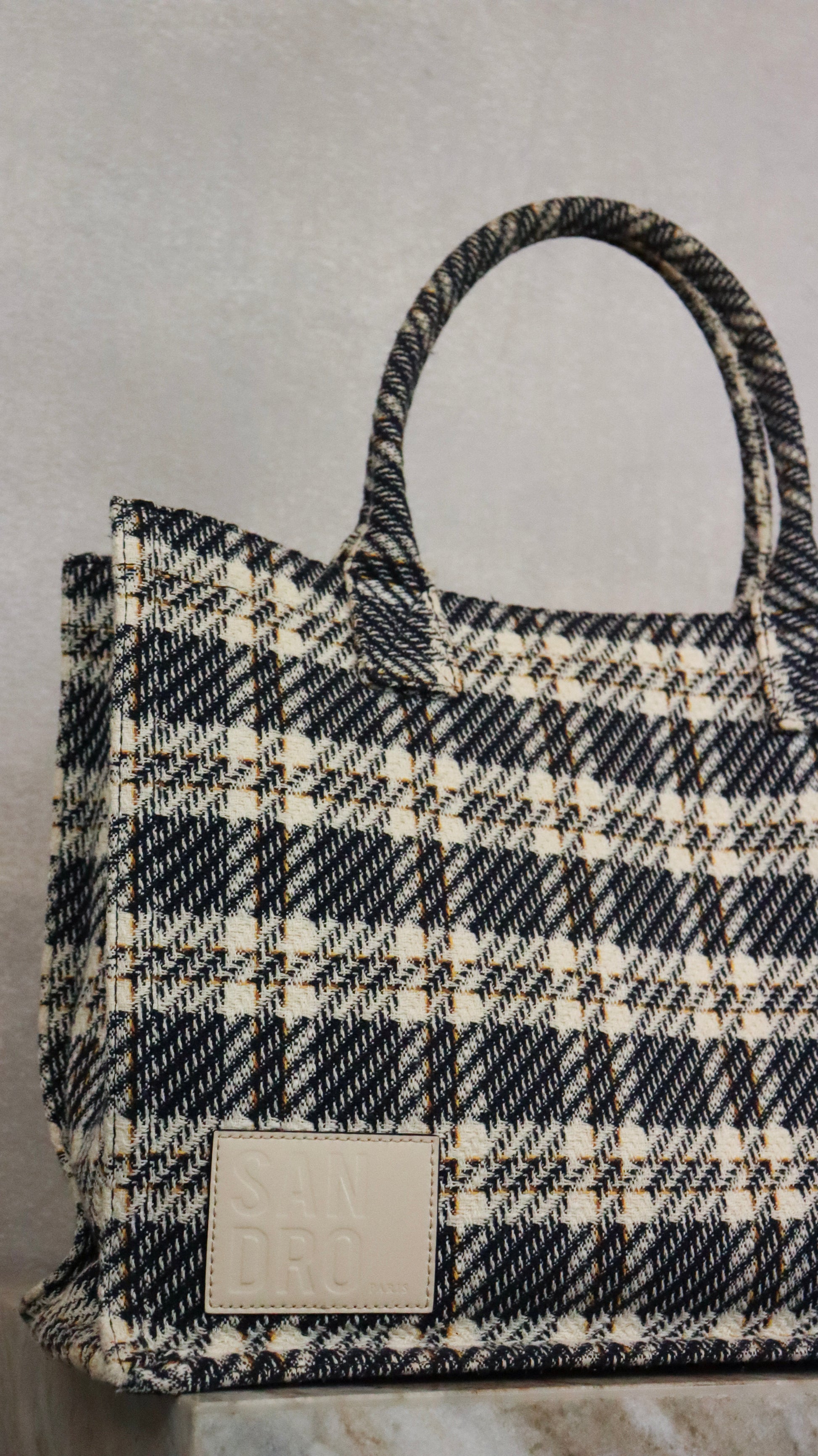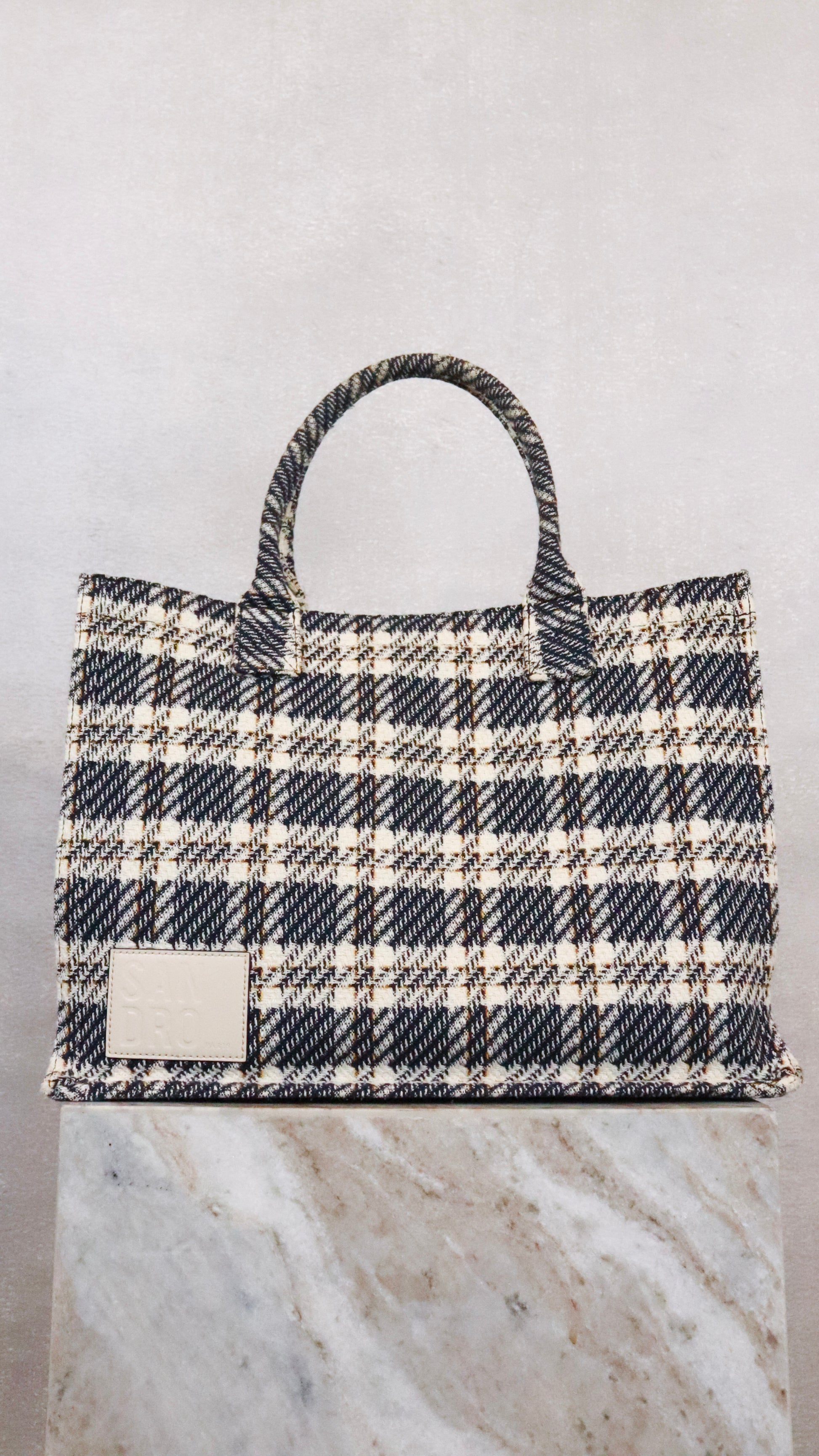 Sandro Plaid Booktote in Navy