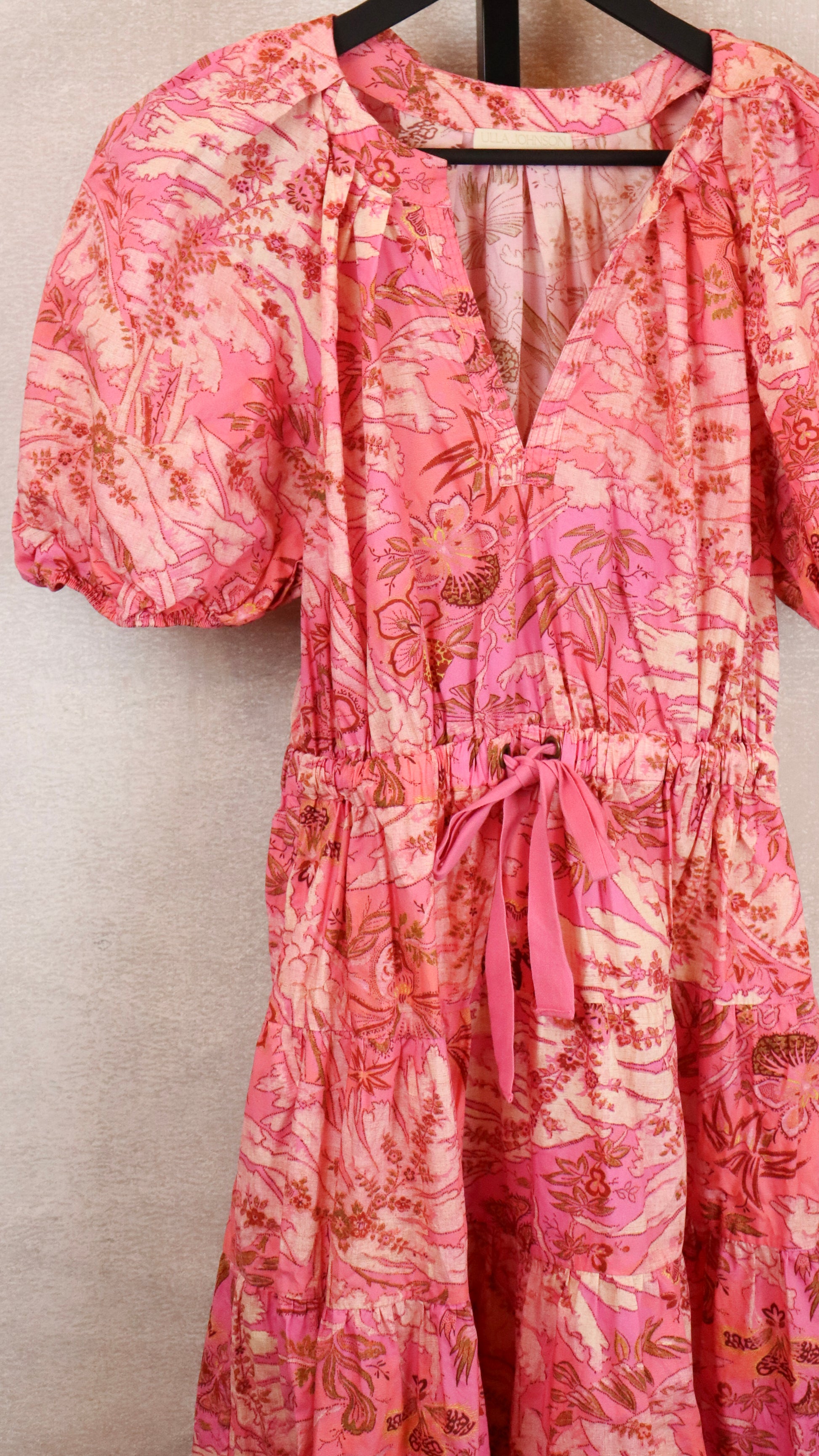 Pink Ulla Johnson V-Neck Dress w/ Puff Sleeves