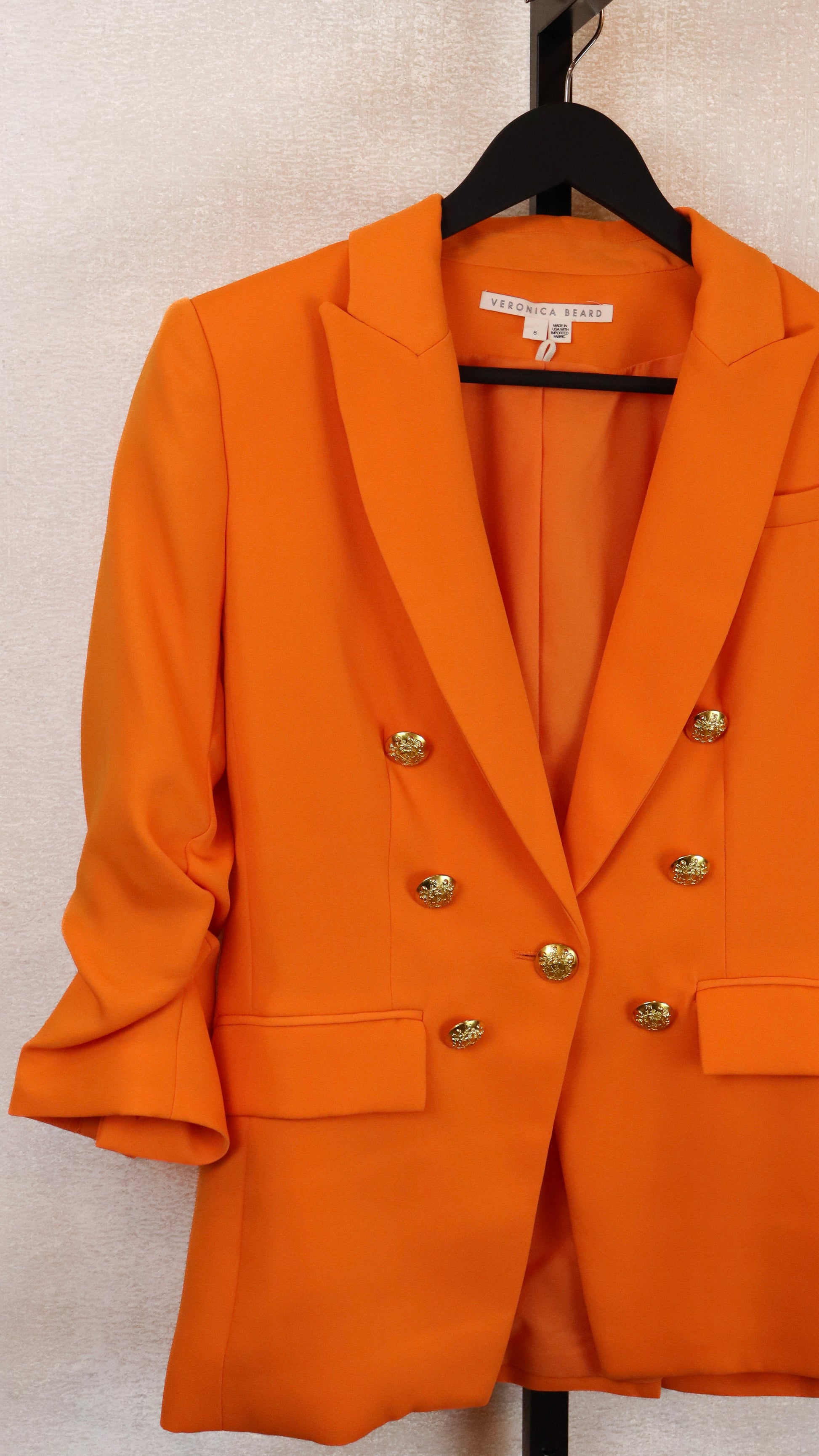 Bright Orange Veronica Beard Blazer w/ Gold Hardware
