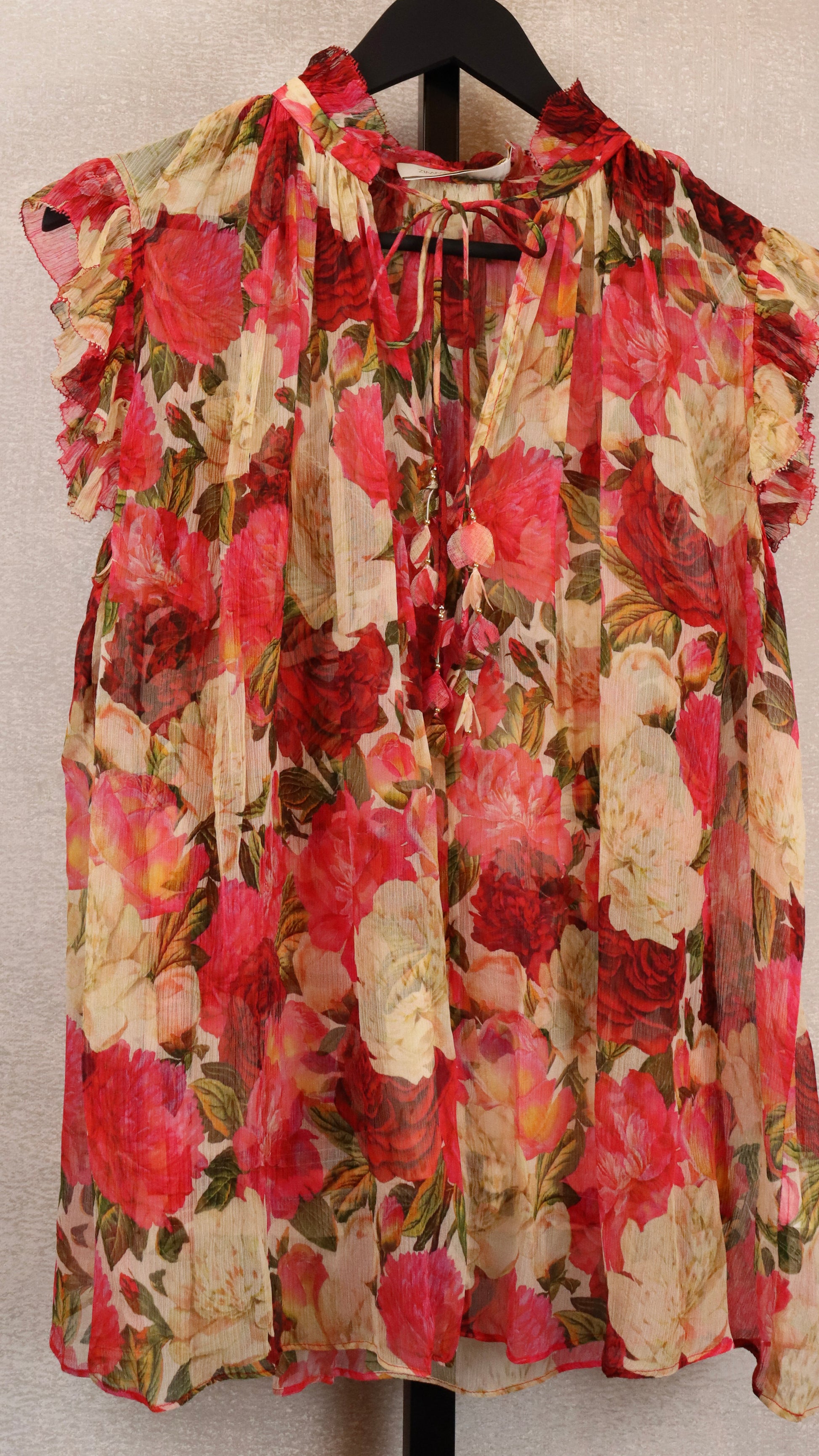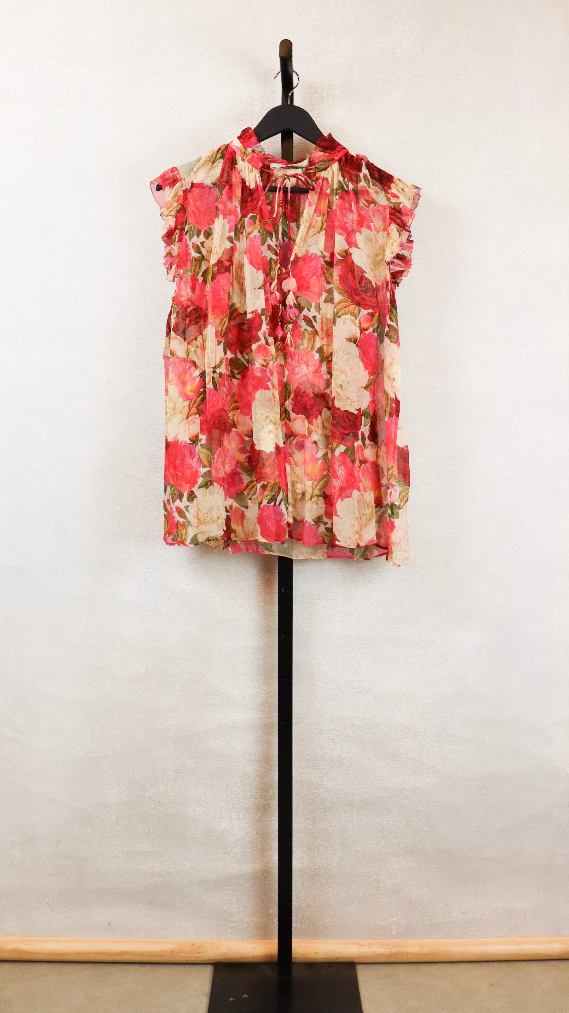Pink and Red Rose Design Sheer Top w/ Detachable Tank Top Underneath